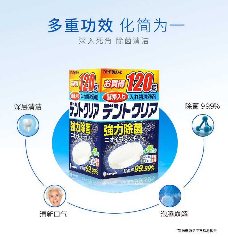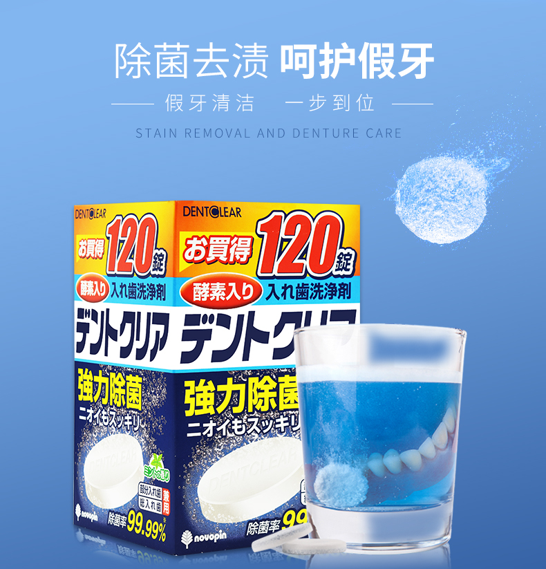 包邮!日本纪阳NOVOPIN假牙/牙套清洁片120片