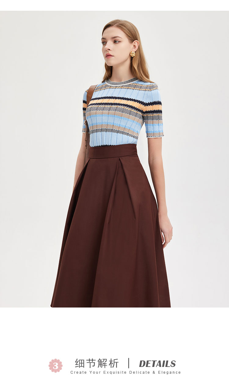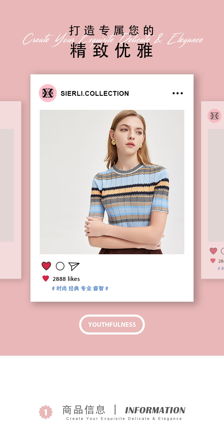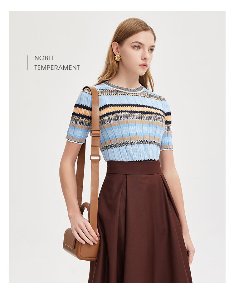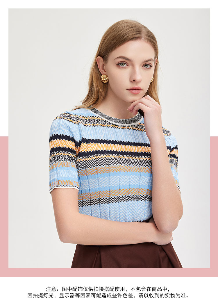 PF6A1斯尔丽夏季新品丝质条纹常规款宽松中袖针织衫