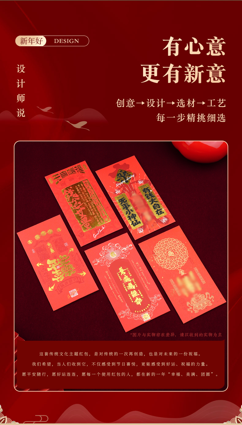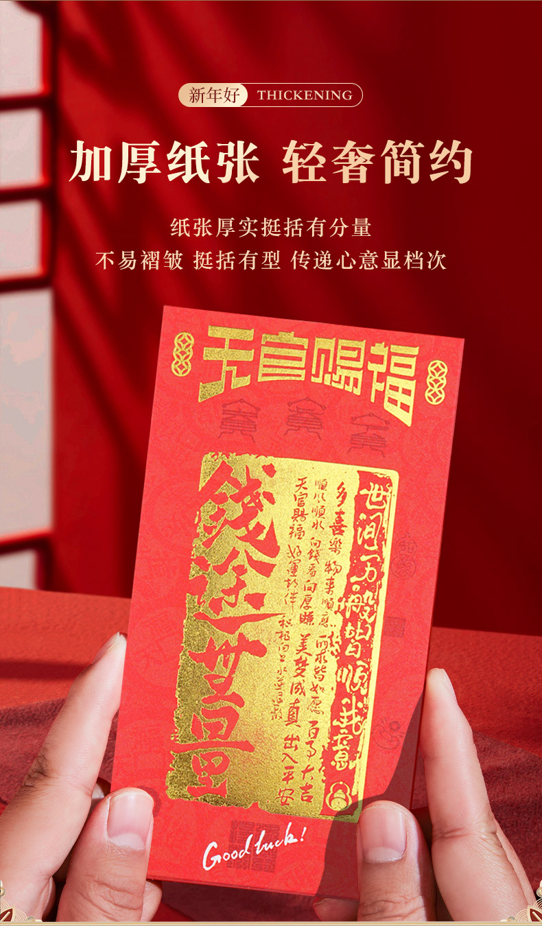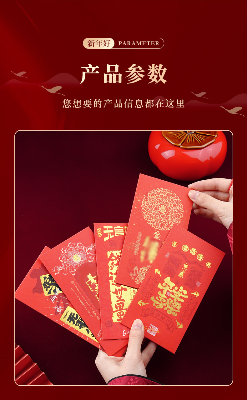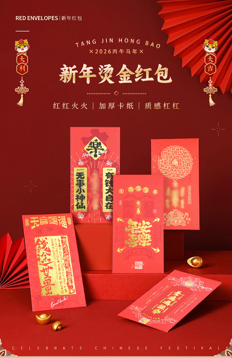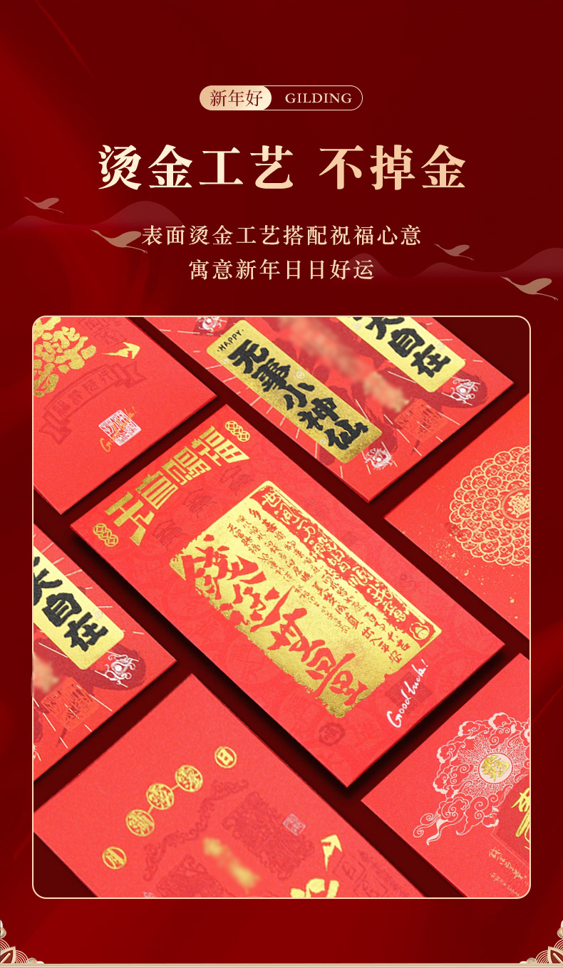 春节佳节中式烫金红包春节民俗新年过年压岁钱袋封