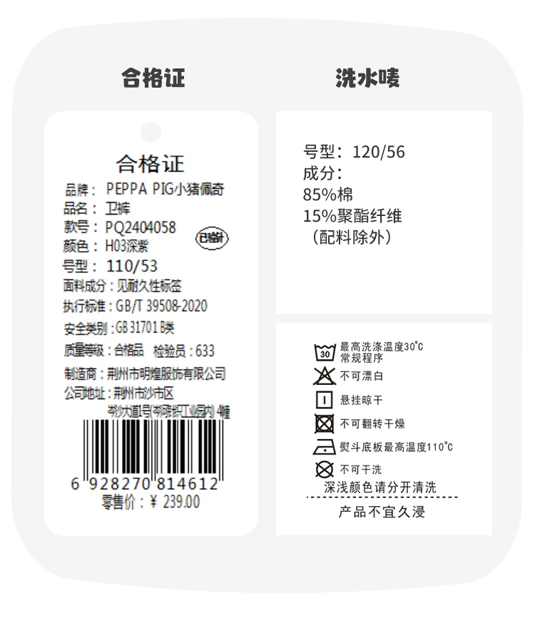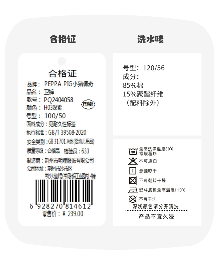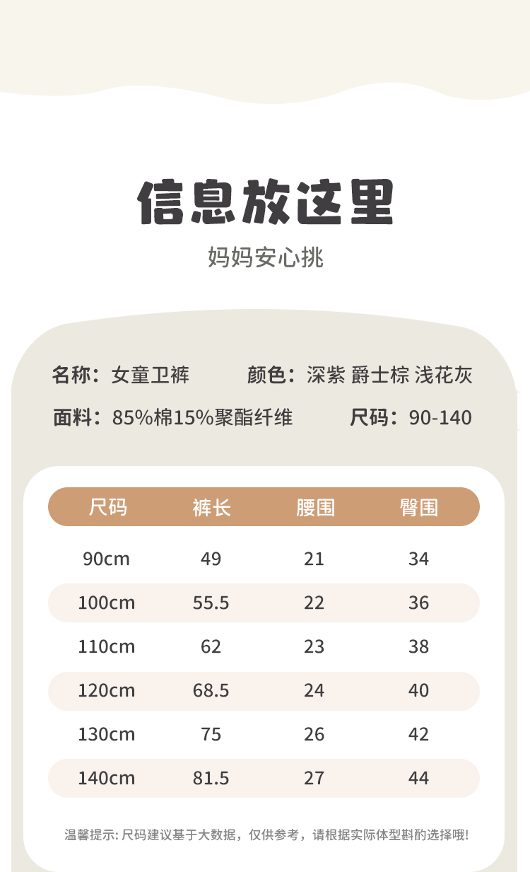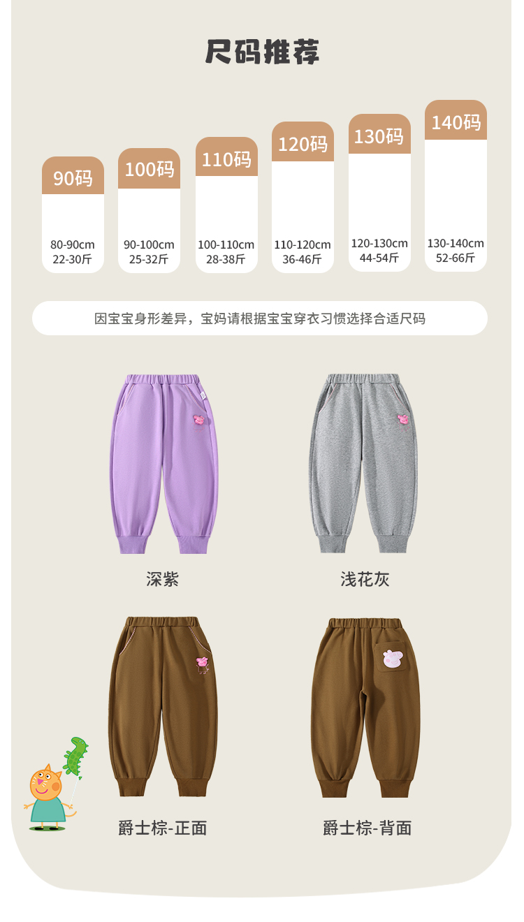 【90-140】【小猪佩奇】女童春秋卫裤百搭休闲束脚裤
