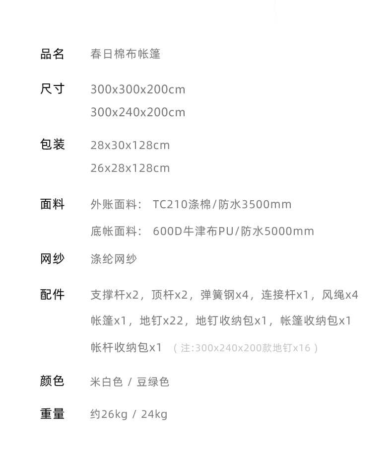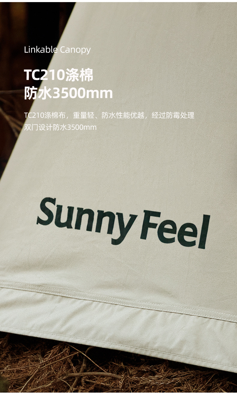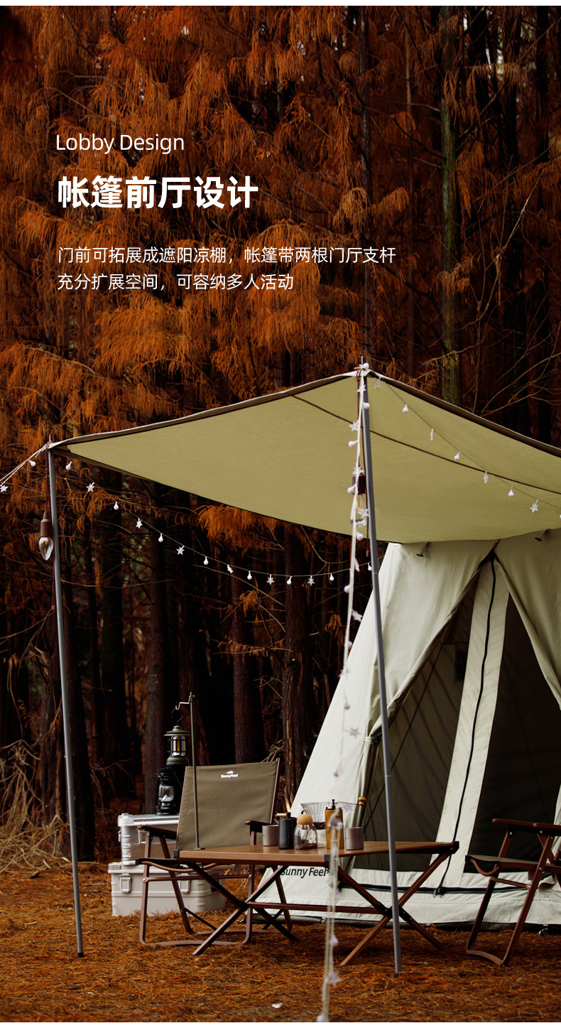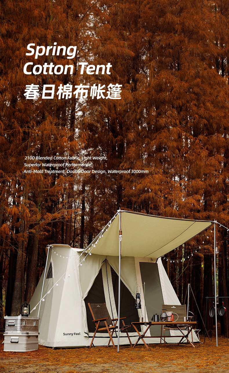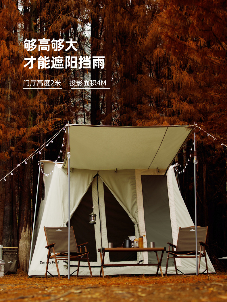 SunnyFeel户外露营春日帐篷野营超大春帐棉布5人帐篷遮阳天幕防雨