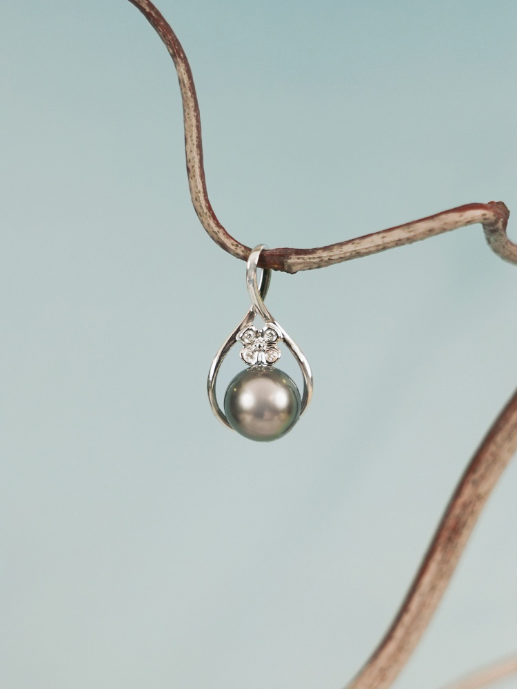 【现货】珍珠吊坠轻奢设计款黑珍珠【尺寸9.2mm】【一物一证书】
