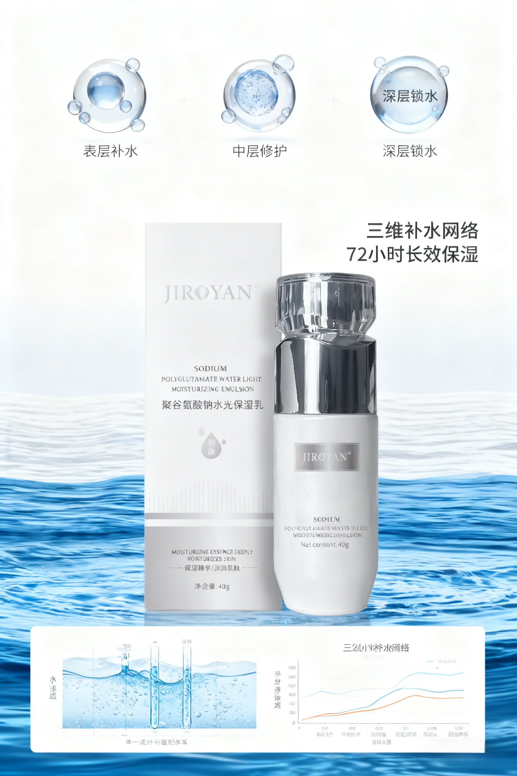 ✔ 3D立体补水——5重分子量聚谷氨酸,构建肌肤「水循环管网」