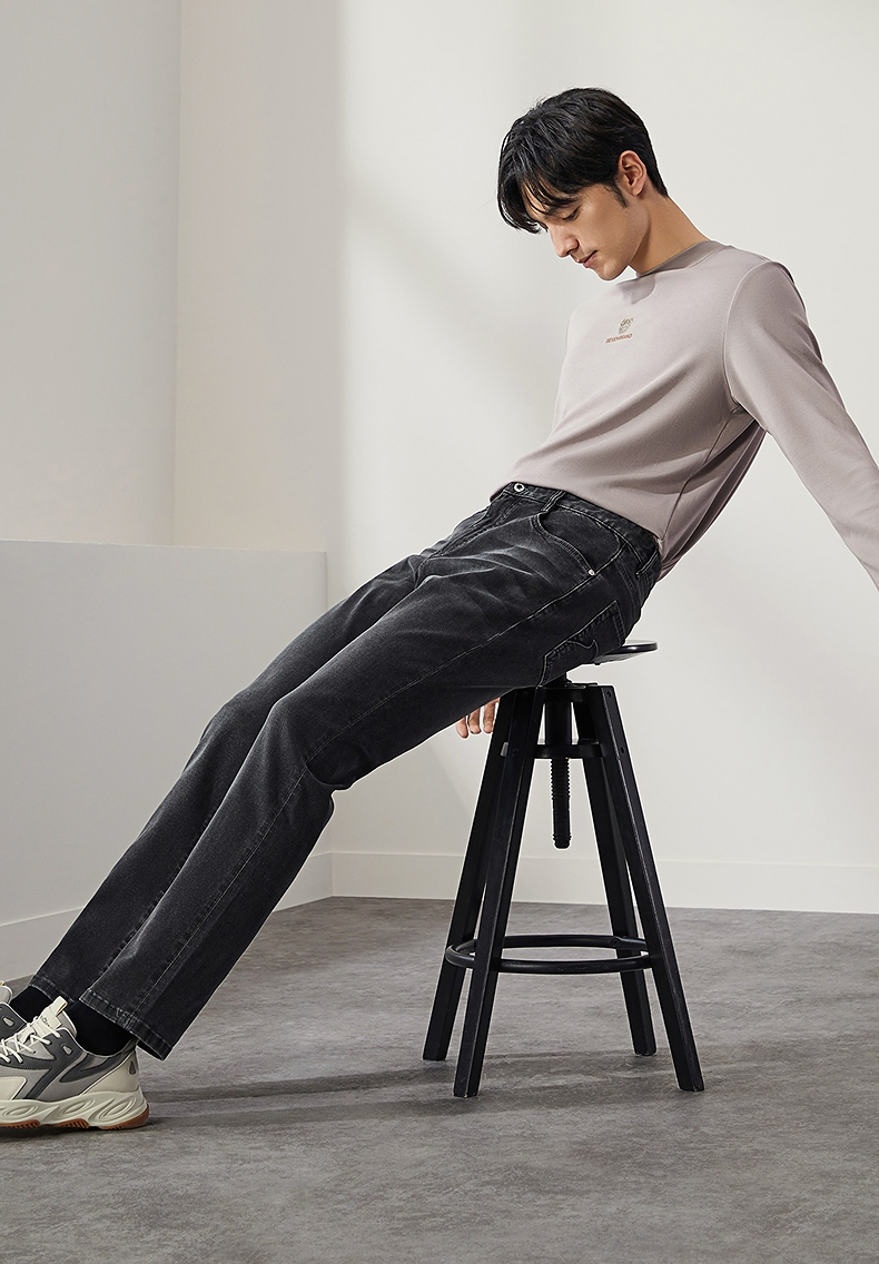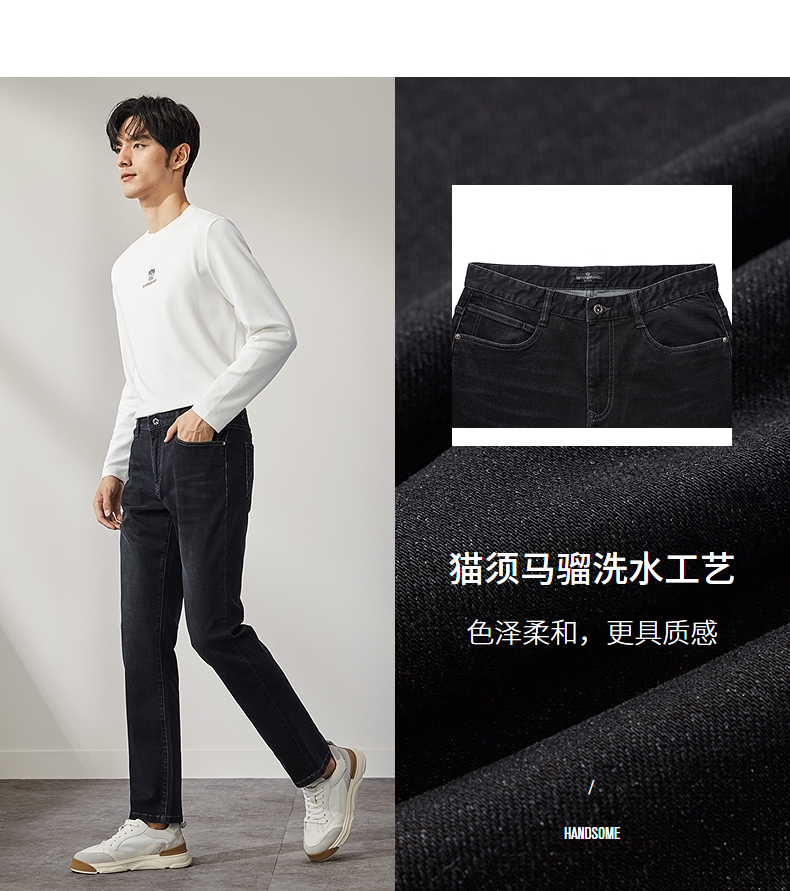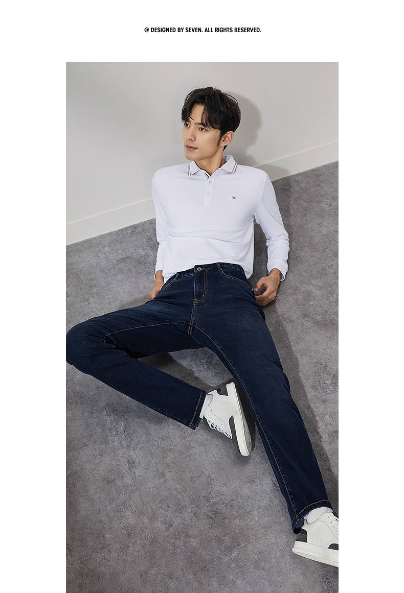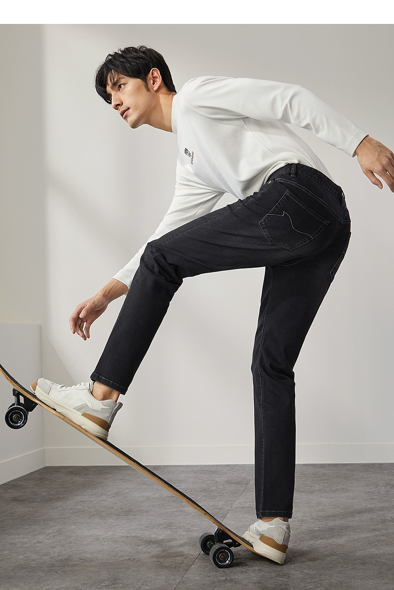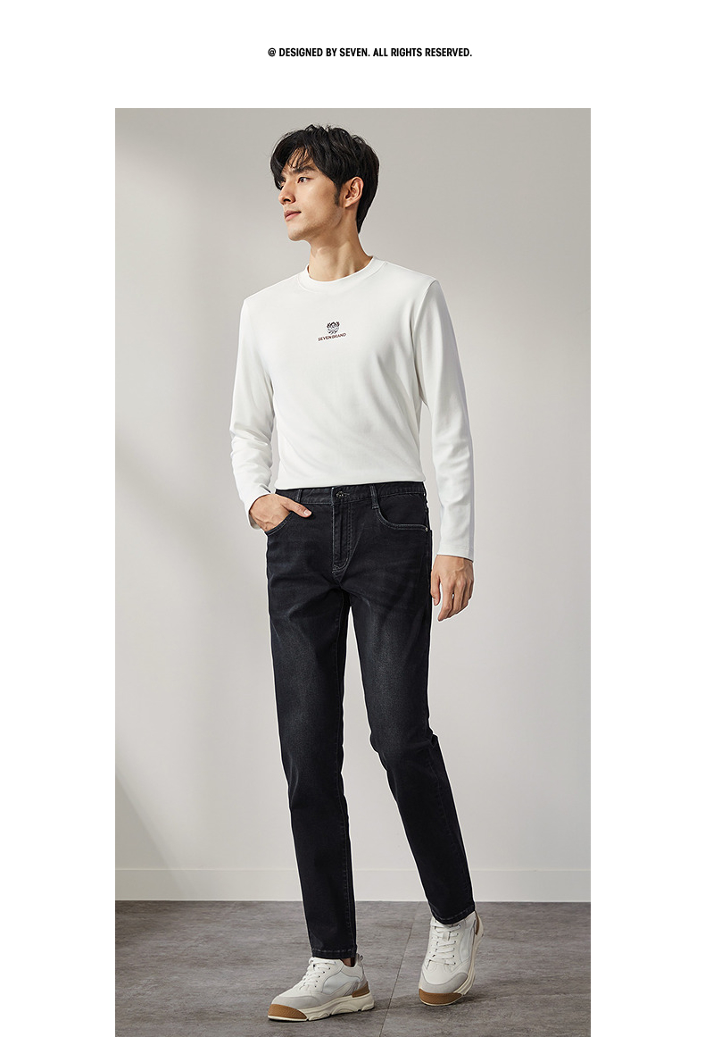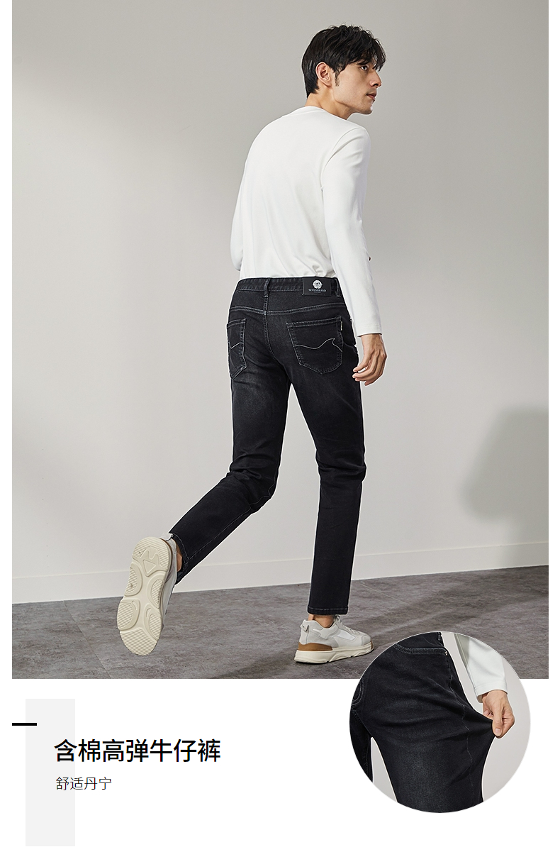 【高弹】柒牌牛仔裤男款2024秋季新款时尚潮流百搭舒适直筒长裤子 127H71270