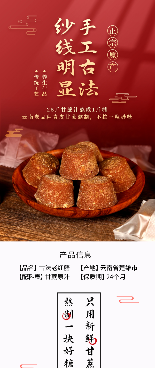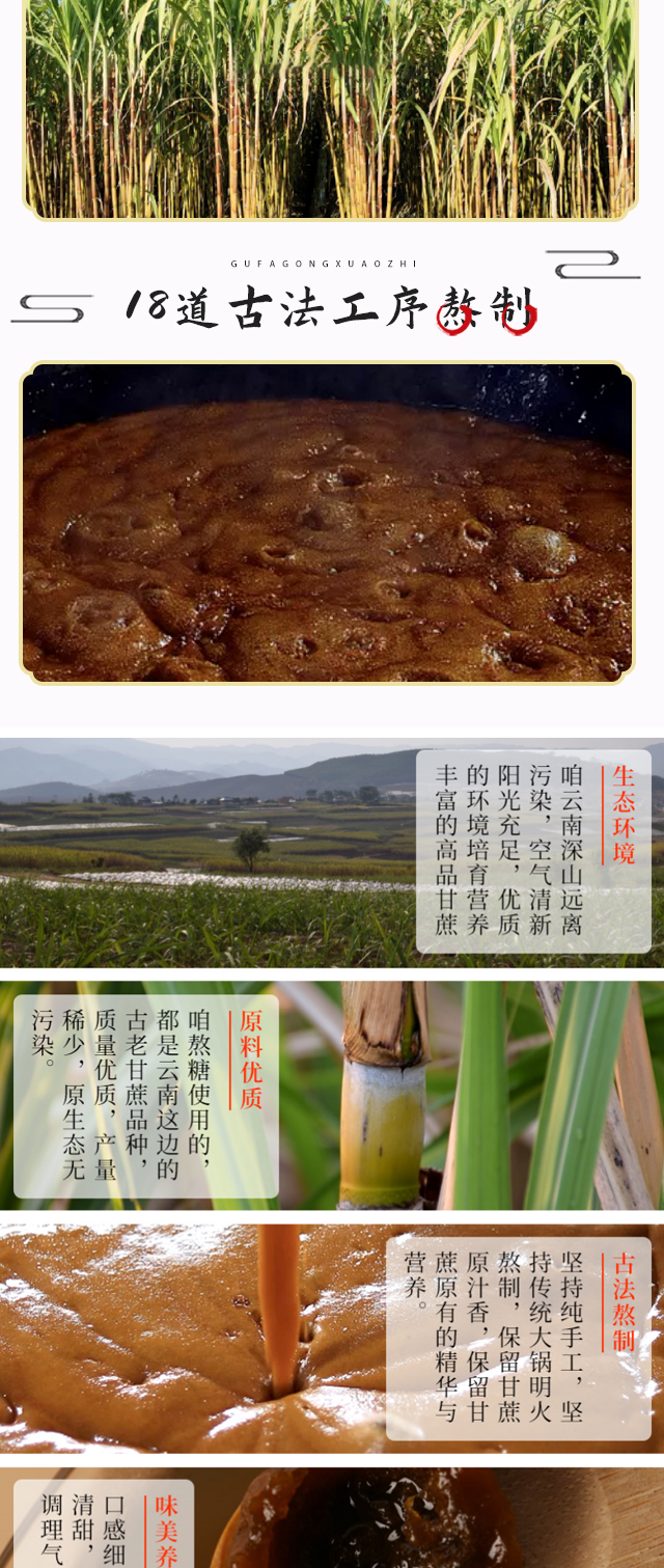 【手工古法红糖】云南老品种甘蔗 古法熬制 清甜不腻,3种任选