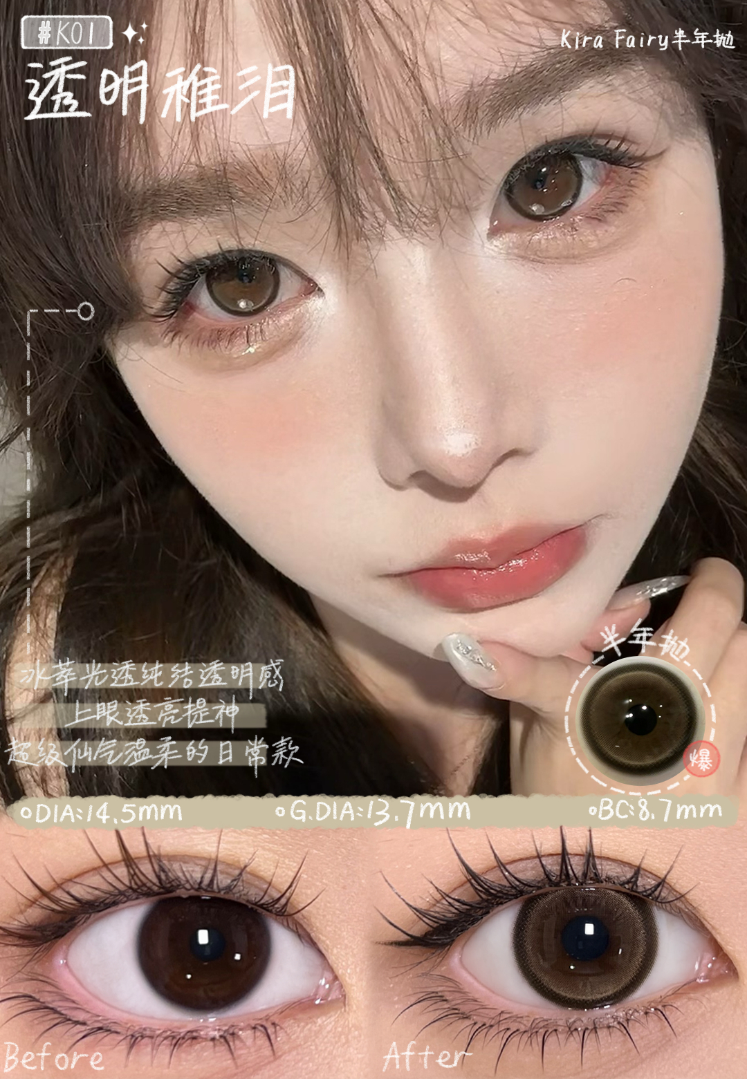 kira半年抛 透明稚泪/核桃谷子/鹿茸杏子/高分时刻/白金梨木/太妃奶栗 棕黑褐 14.2-14.5mm