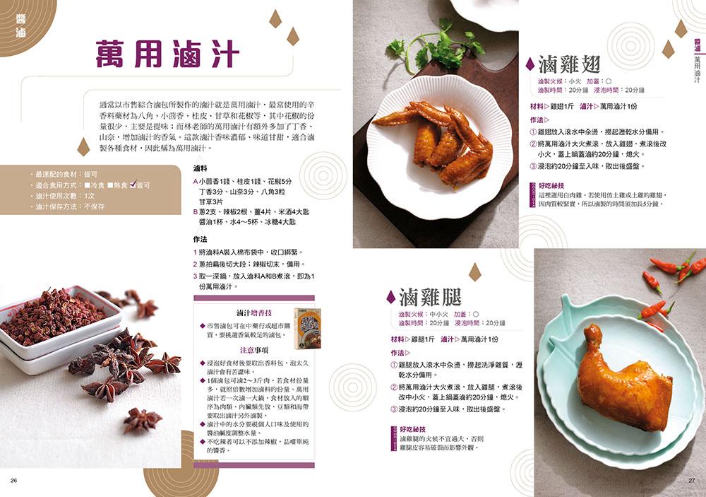 書中還針對每種滷汁特色做解說,並提供滷汁的速配食材、使用次數、滷汁增香技及注意事項,讓你知道更多滷汁美味的祕密。此外,為了能一次就做成功,林老師也清楚講解滷味製作細節,從挑選食材、食材前處理,到滷製的火候和時間、浸泡時間,全部都一一列出;還傳授了讓滷味美味加分的配菜及辣醬。絕對是愛吃滷味的人,一定要珍藏的全方位滷味書!