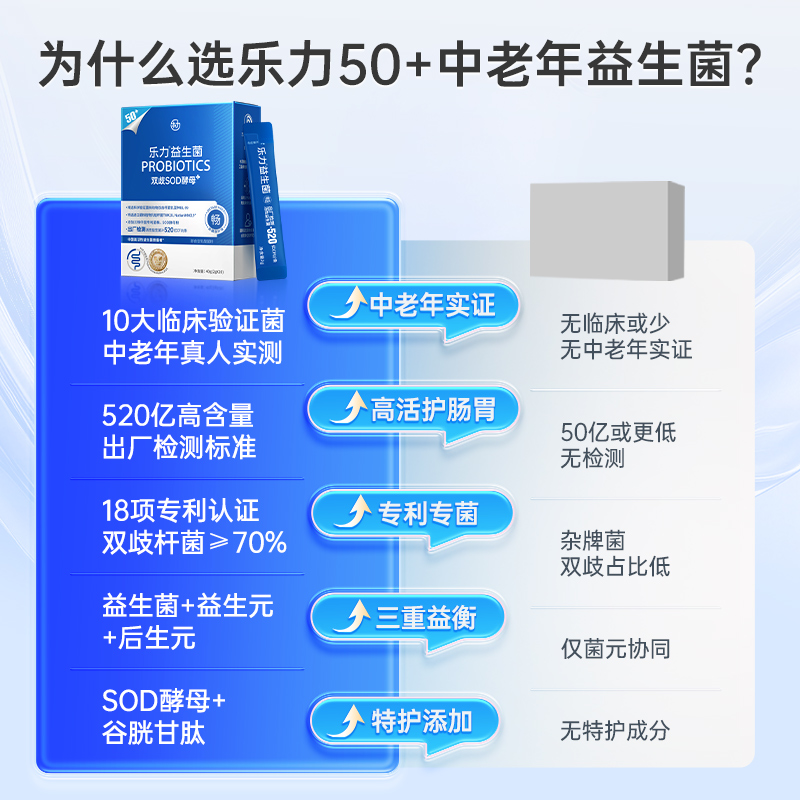 乐力益生菌中老年双歧杆菌膳食纤维520亿高活性守护肠道健康