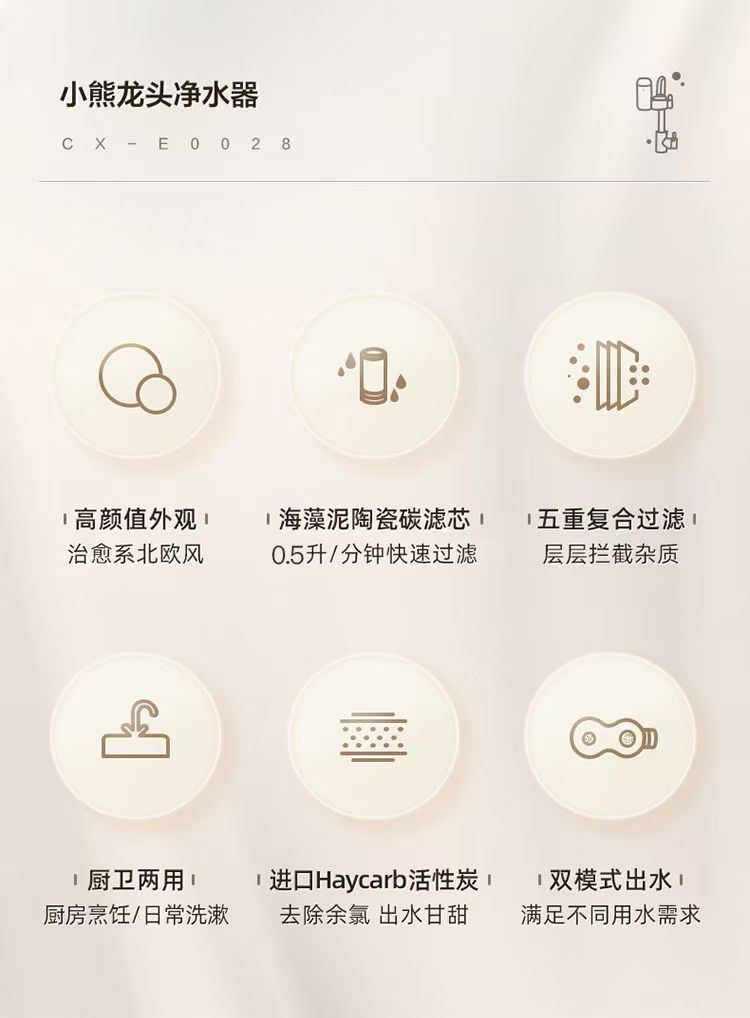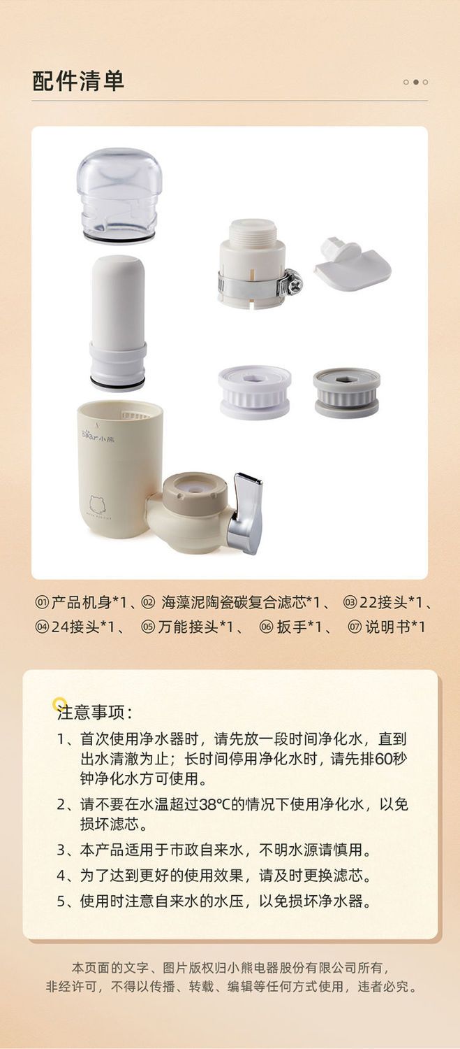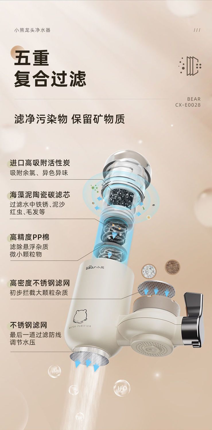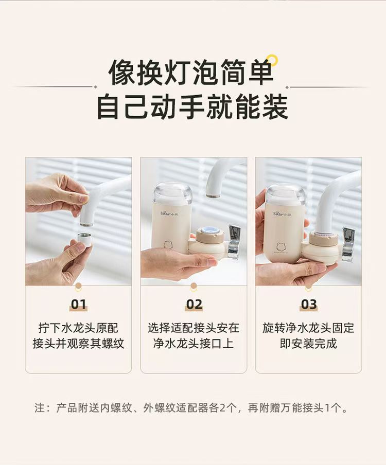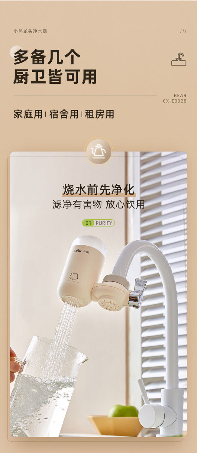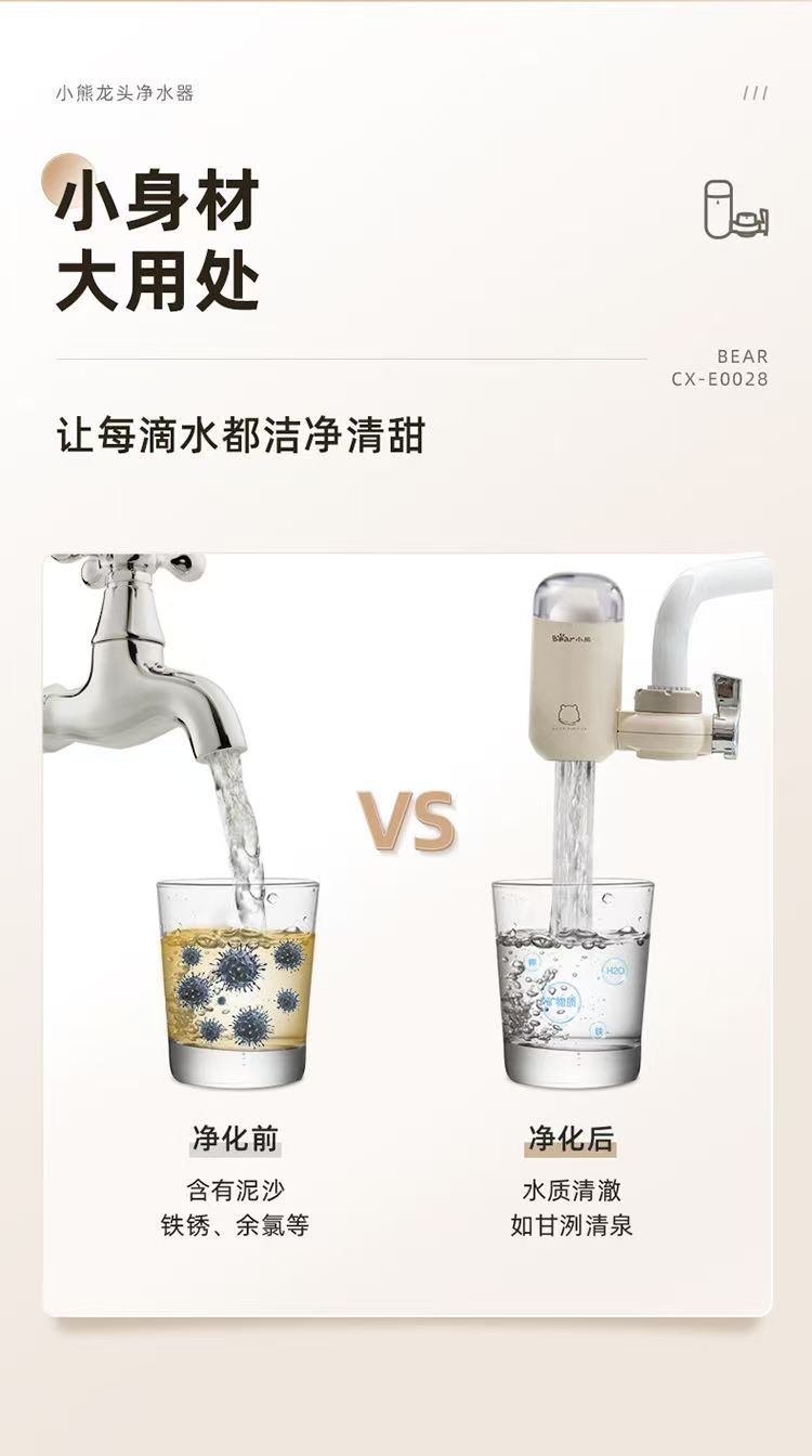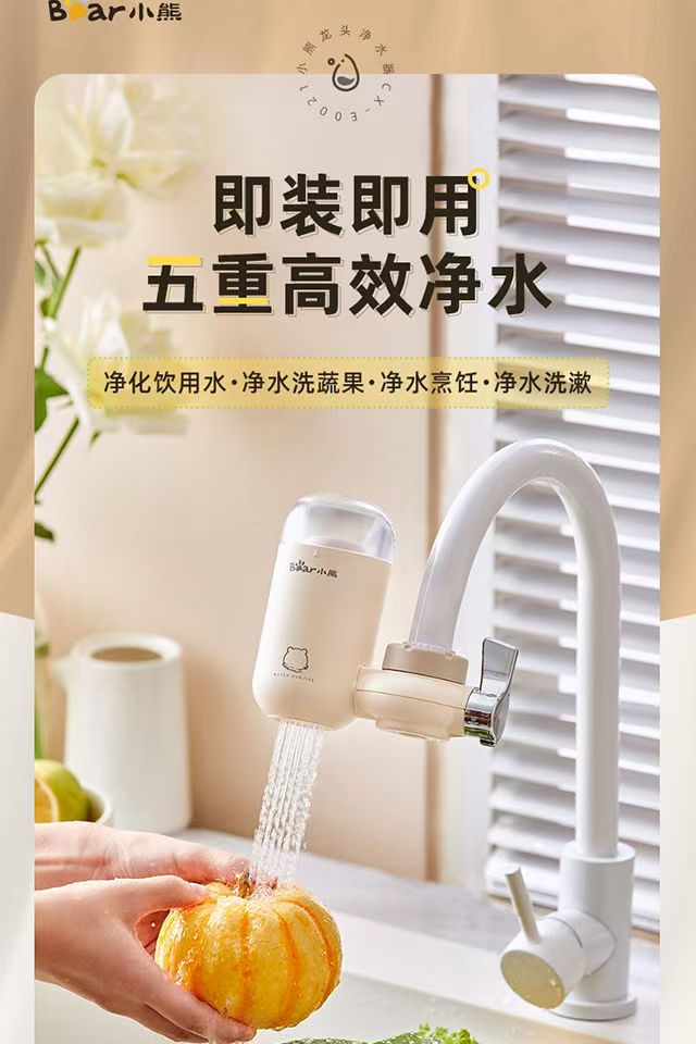 小熊净水器水龙头过滤器厨房通用自来水前置净化器