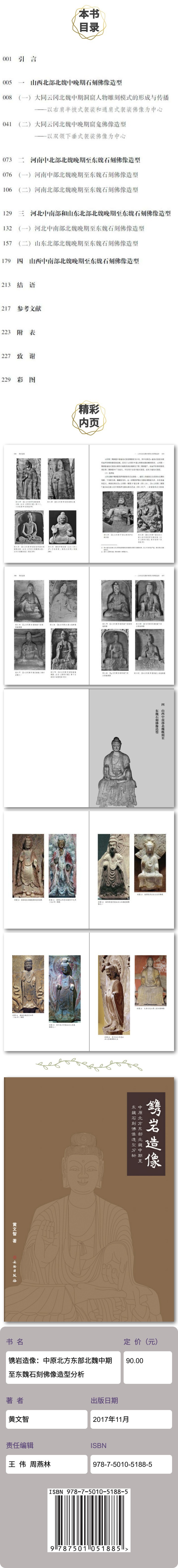 《镌岩造像——中原北方东部北魏中期至东魏石刻佛像造型分析》具体地阐述了中原北方东部地区,北魏晚期至东魏石刻佛陀像造型的发展情况。笔者基于实地调查资料和学界披露资料,采用考古类型学与美术史样式论相结合的方法,就石刻佛像的着衣表现及人体造型进行分析,以期揭示其演变规律和相关文化内涵。北魏中晚期佛教造像,先后以旧都平城和新都洛阳为中心展开,并在二者影响下形成多个次中心,东魏则是在此基础上的继续发展。基于各地佛像的发展面貌,可分为山西北部、河南中北部、河北中南部和山东北部、山西中南部四个各具特征的区域。
