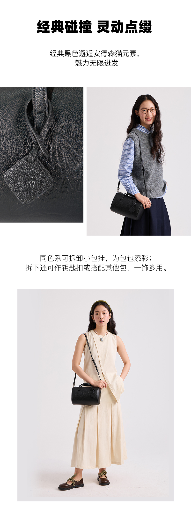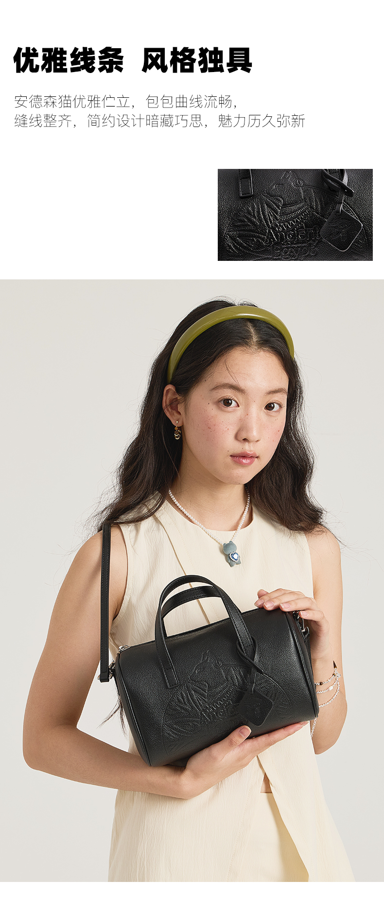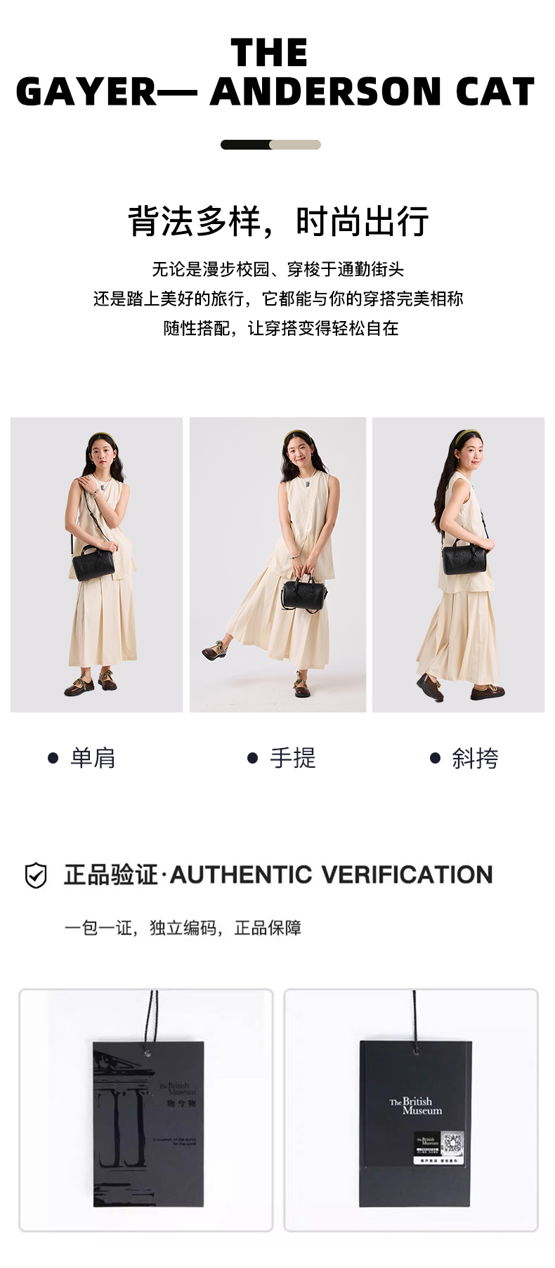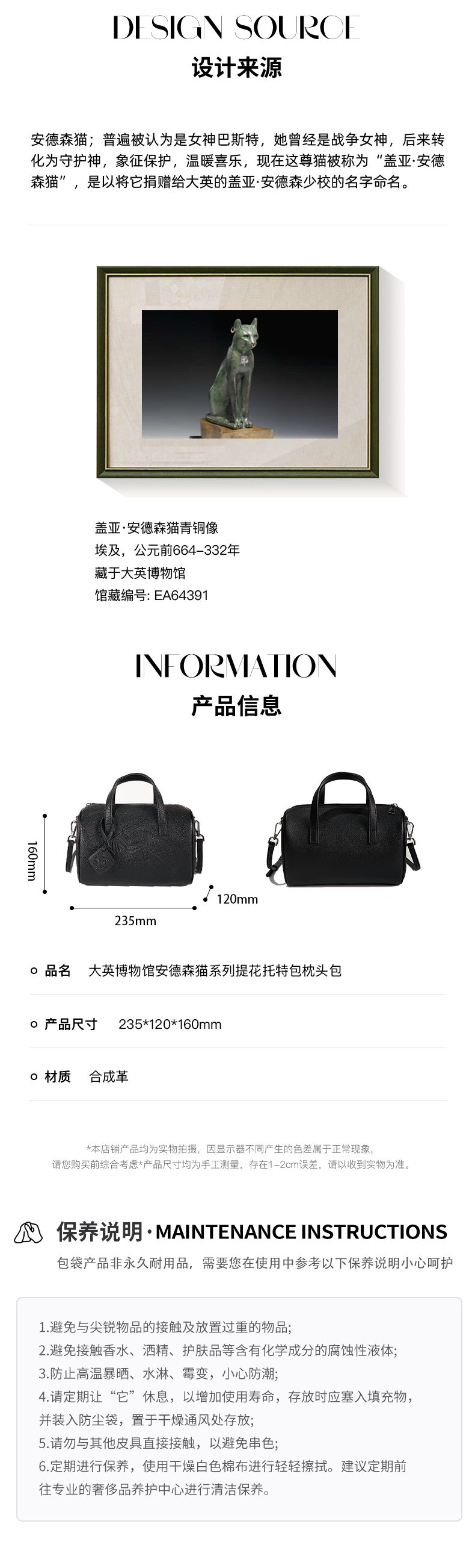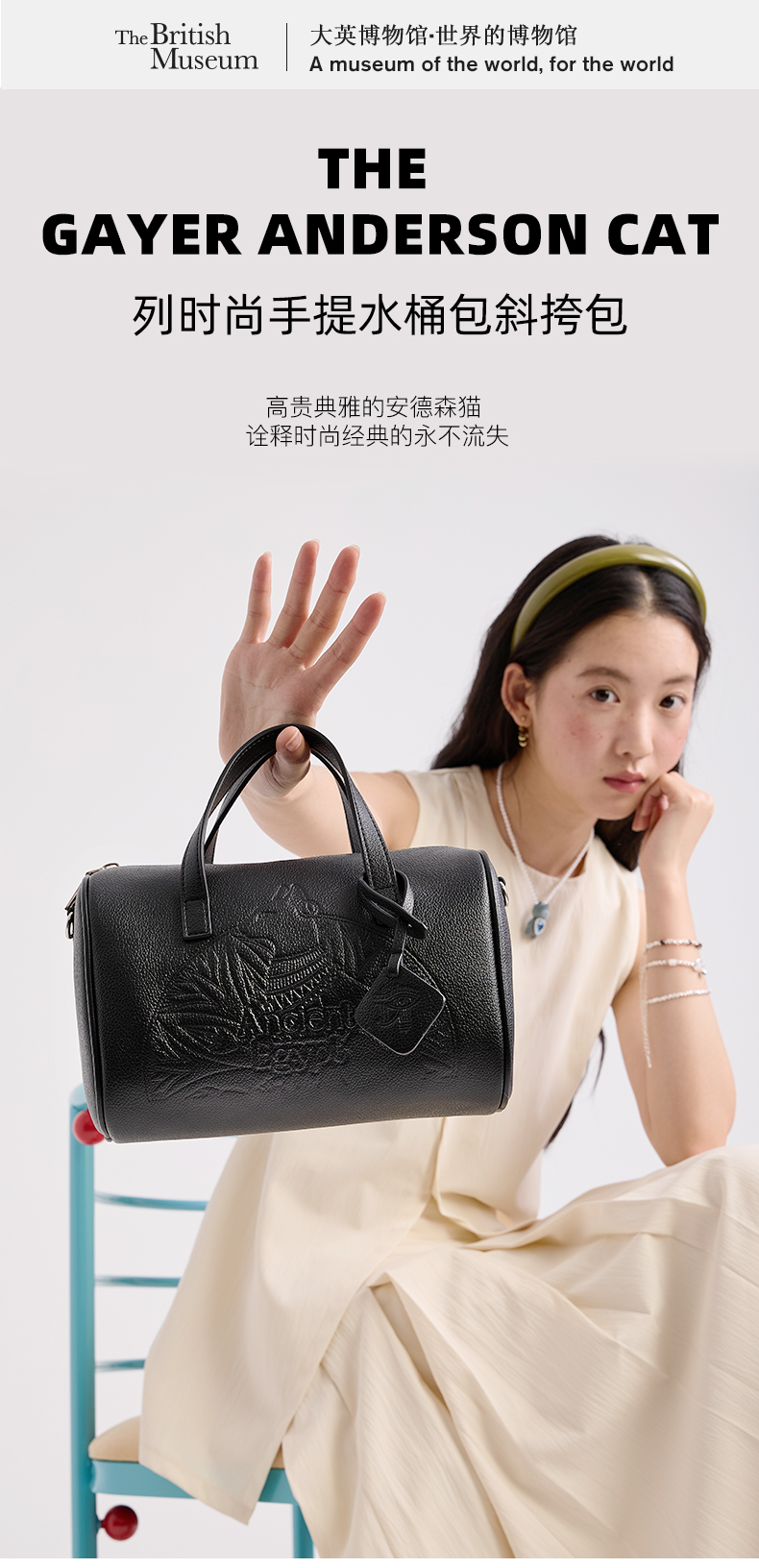 大英博物馆 盖亚.安德森猫系列 时尚手提水桶包斜挎包 黑色