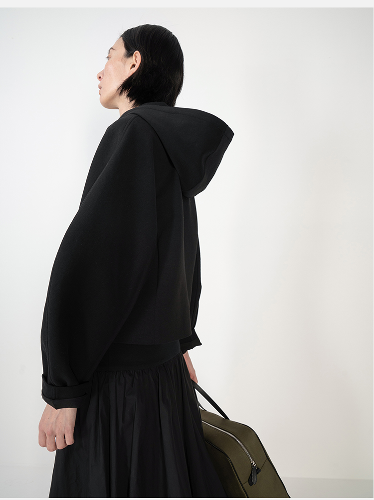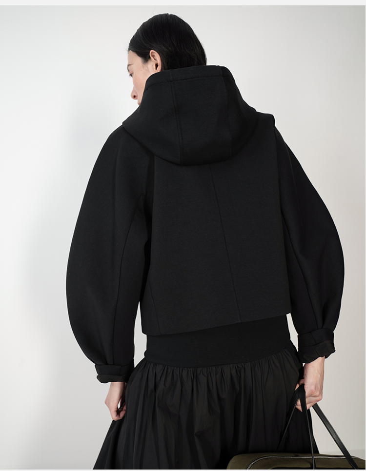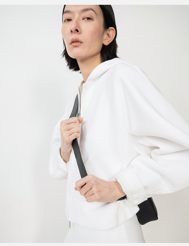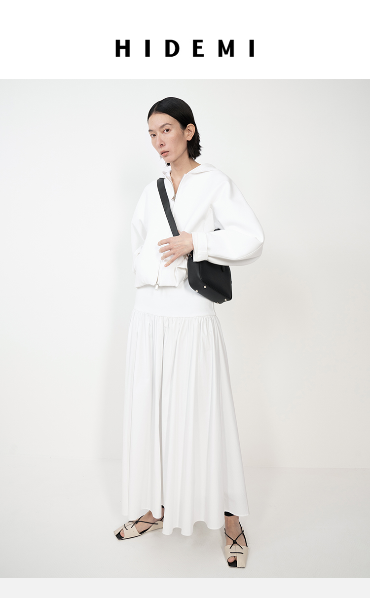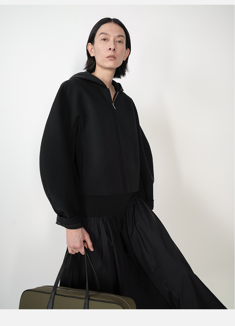 HIDEMI 休闲廓形空气感拉链开衫连帽短夹克/百褶半身裙