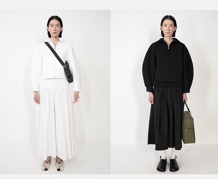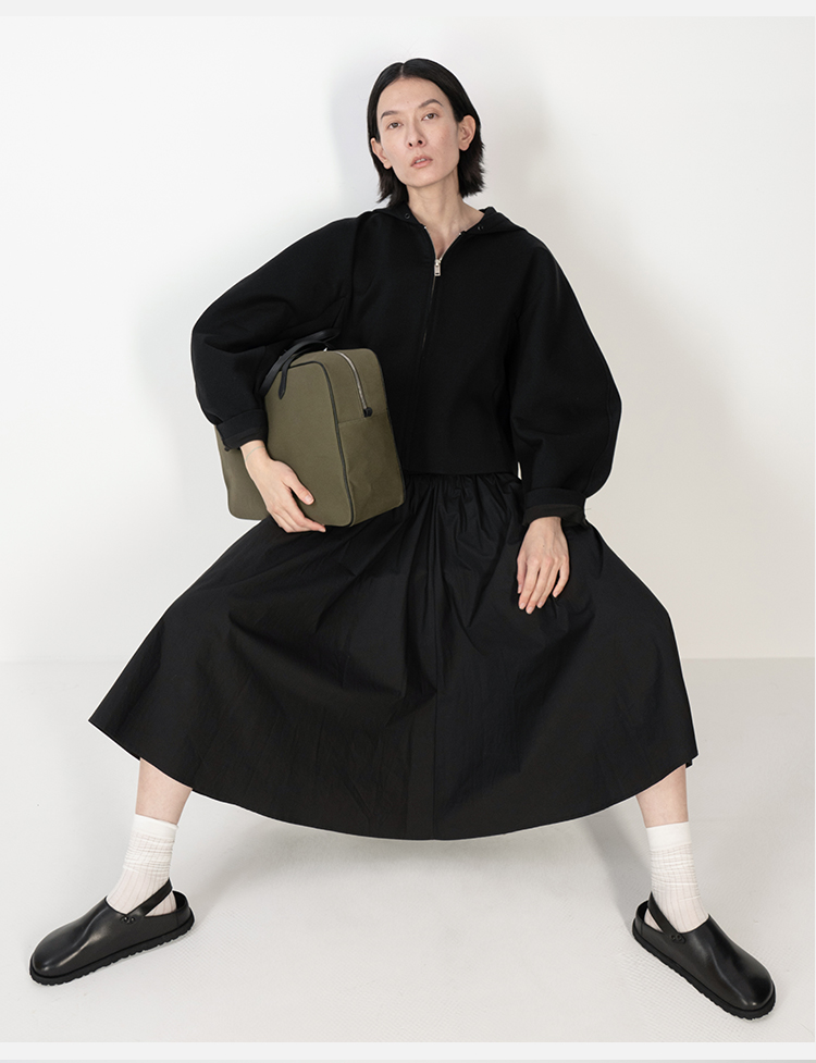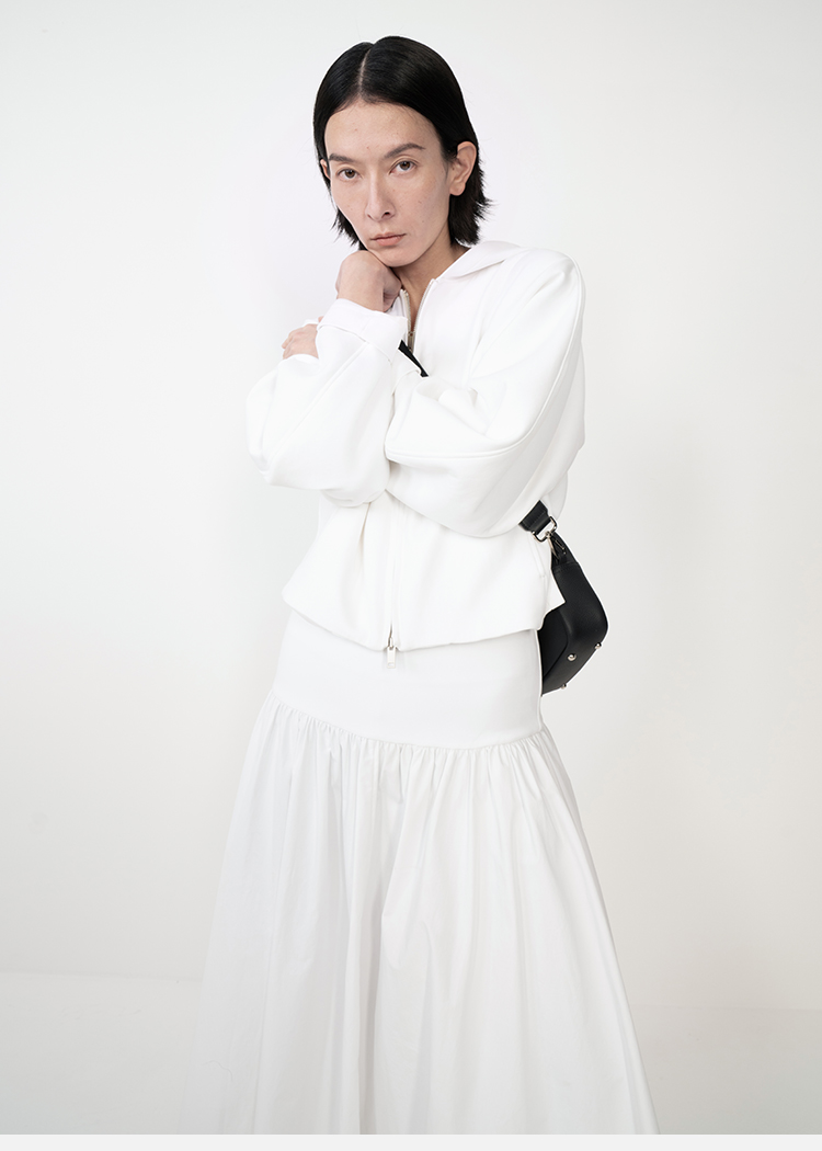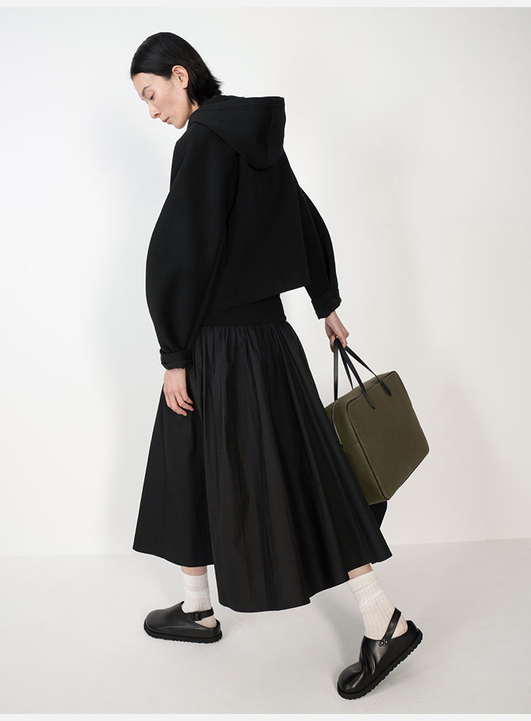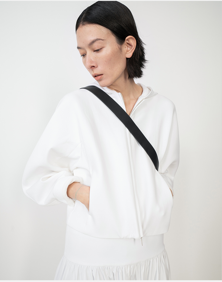 HIDEMI 休闲廓形空气感拉链开衫连帽短夹克/百褶半身裙