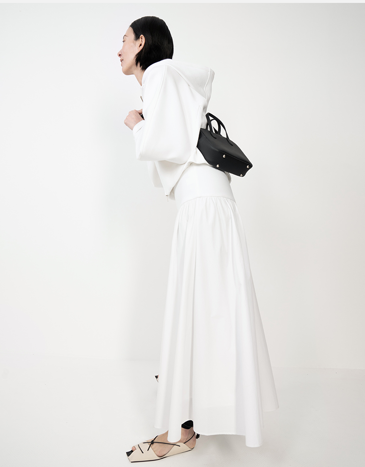 HIDEMI花苞几何设计感衬衫 白色/藏蓝色