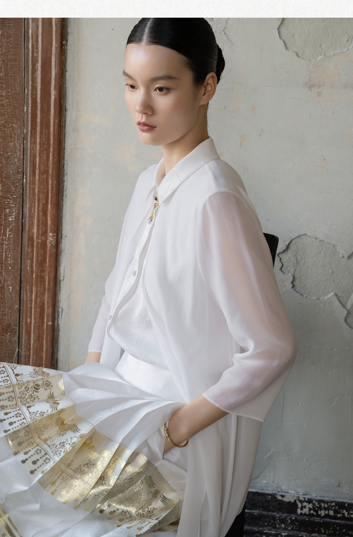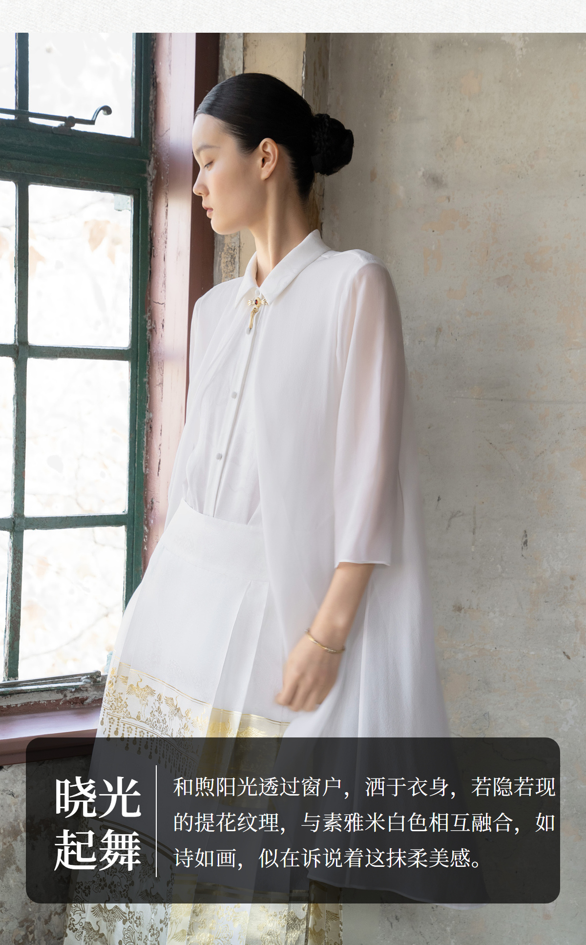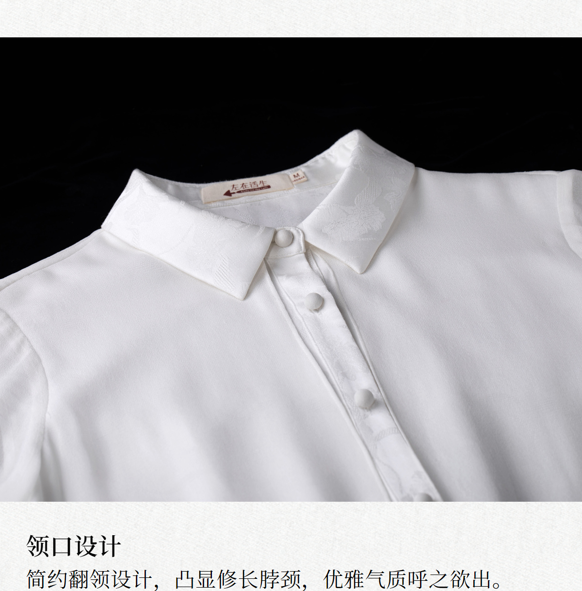 【林栖设计小店】提花衬衣拼真丝飞片优雅气质显瘦2024春夏新品中袖上衣女1942101