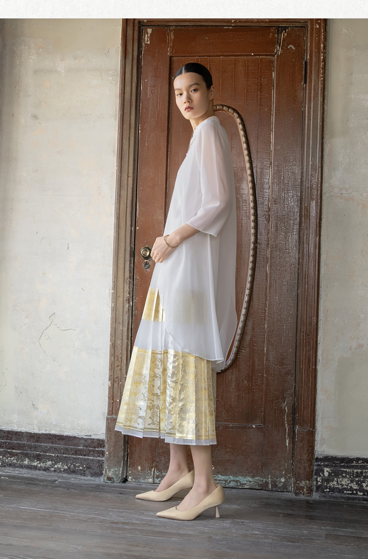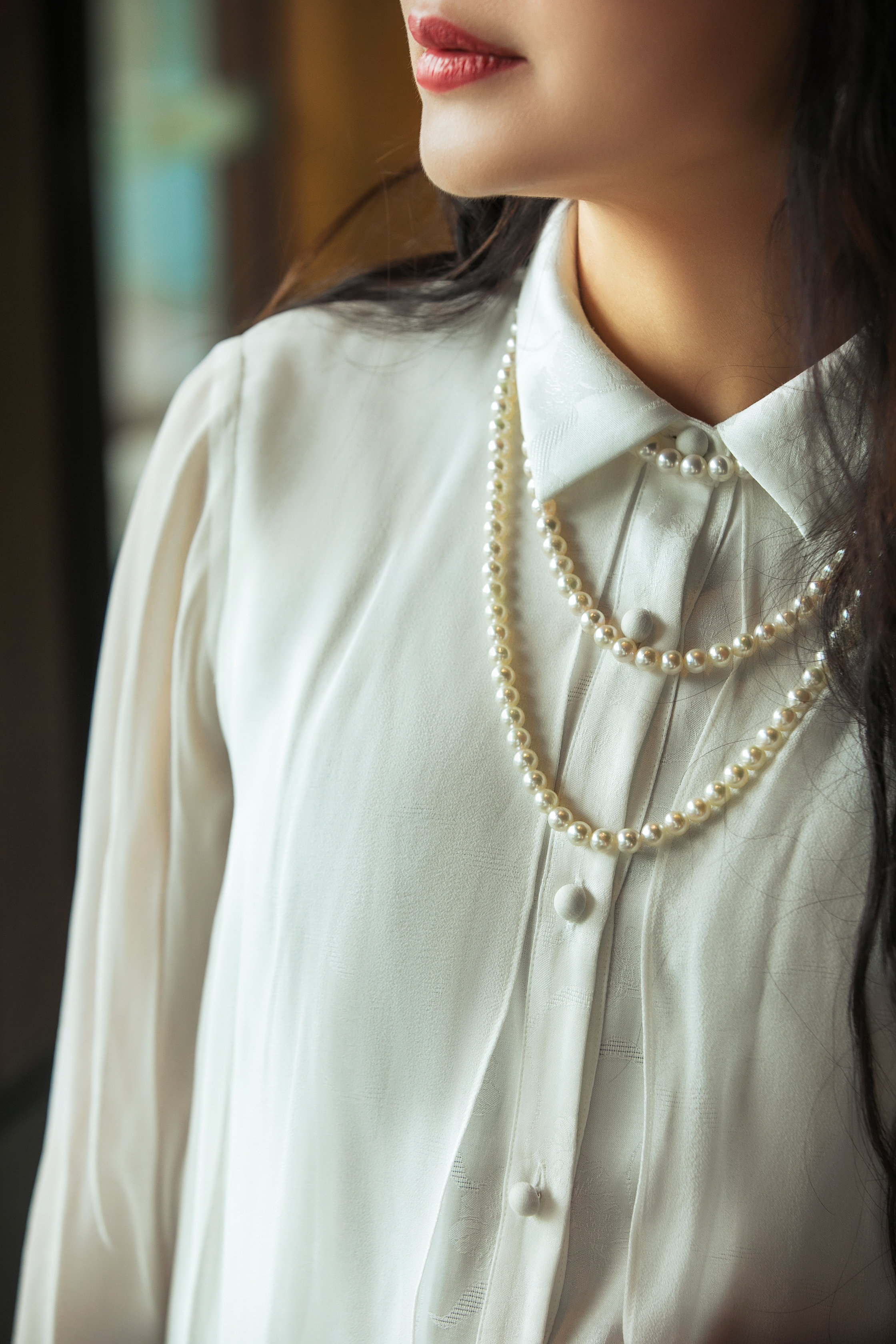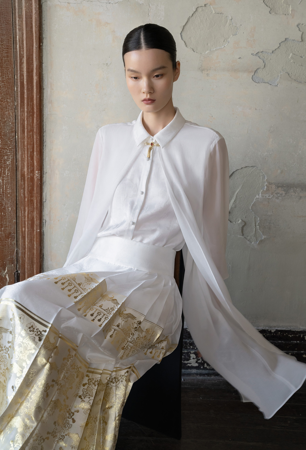 【林栖设计小店】提花衬衣拼真丝飞片优雅气质显瘦2024春夏新品中袖上衣女1942101