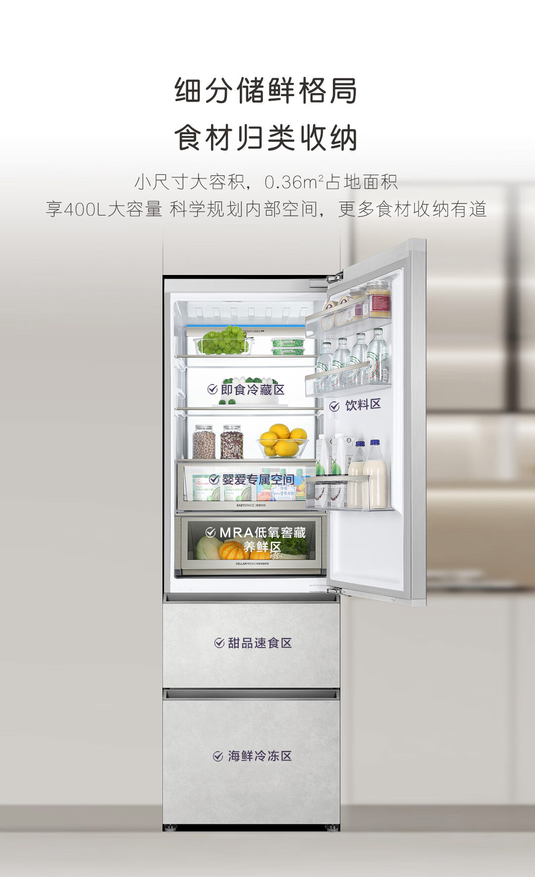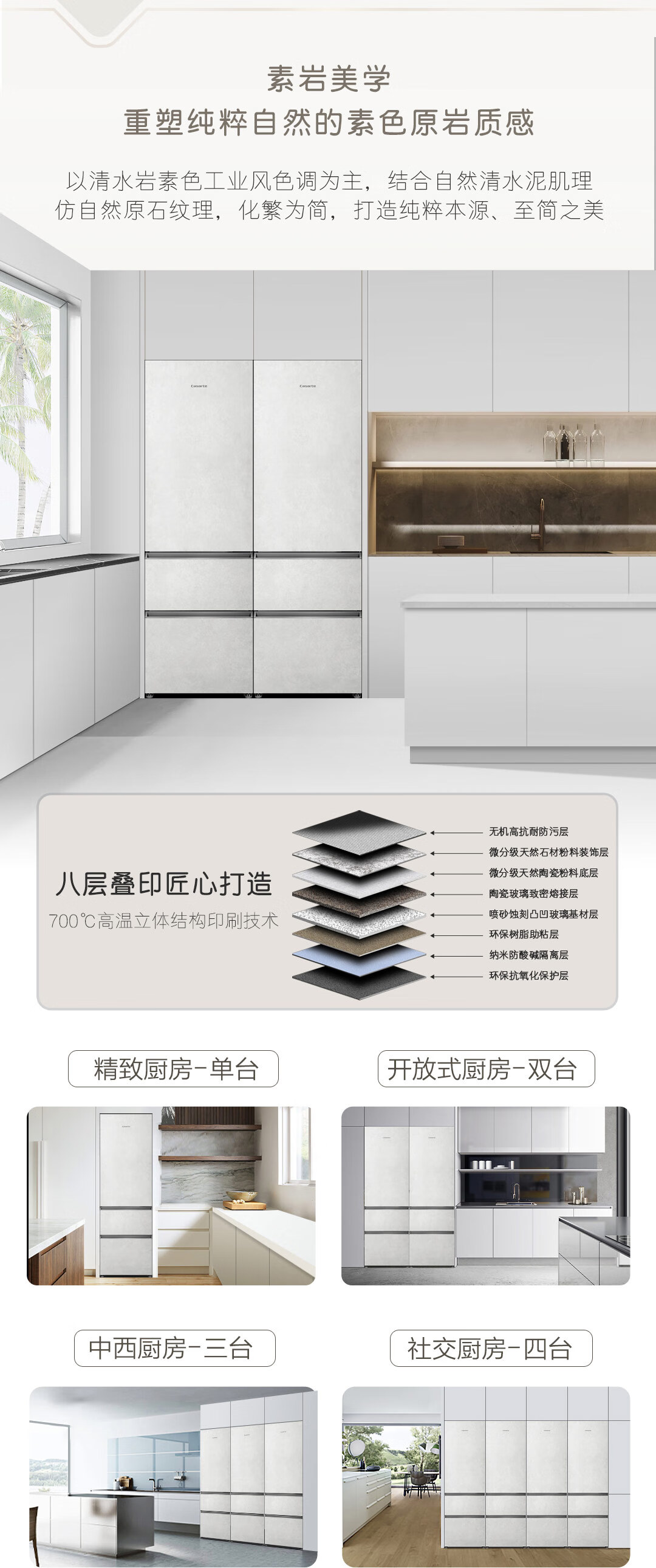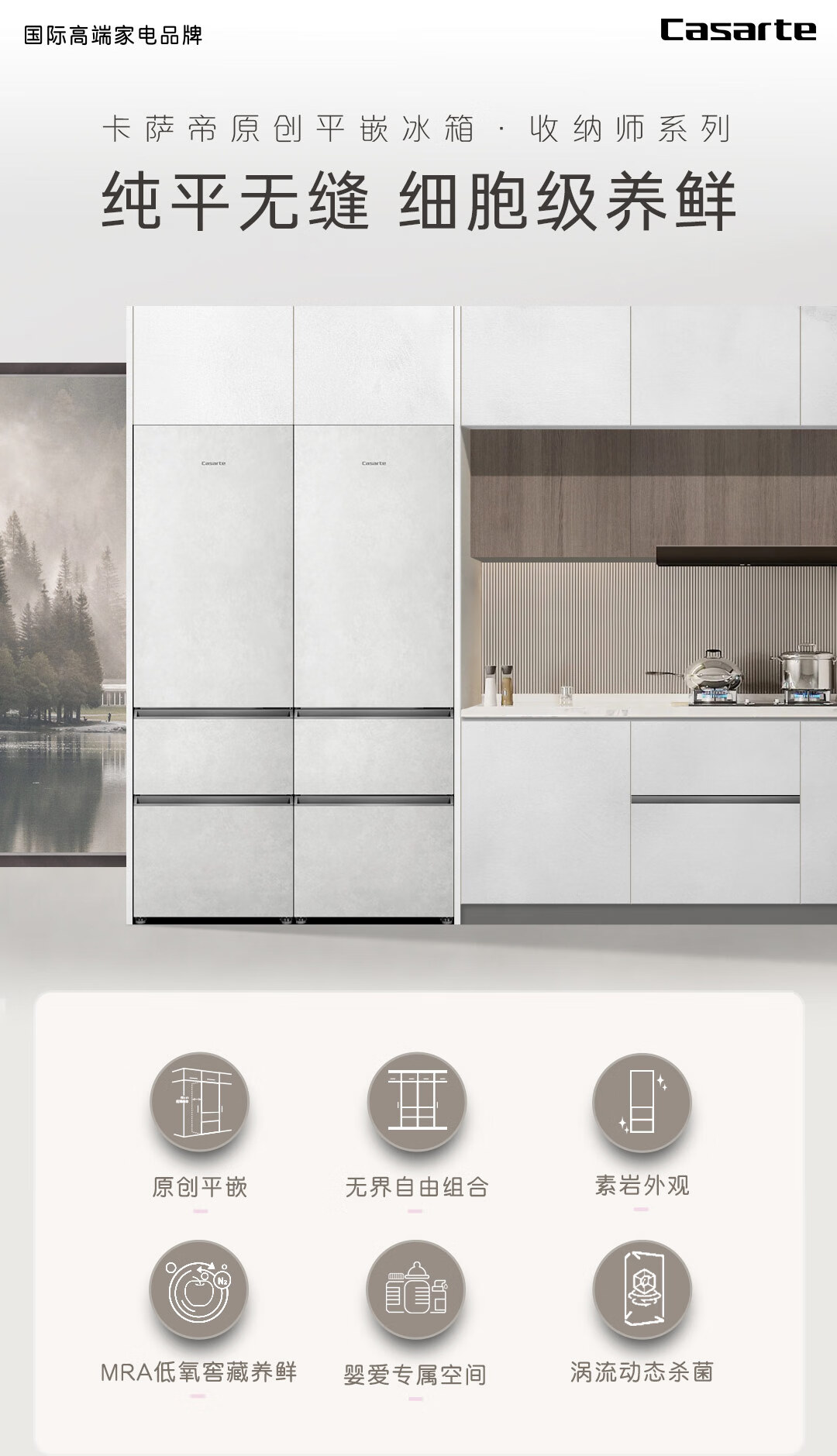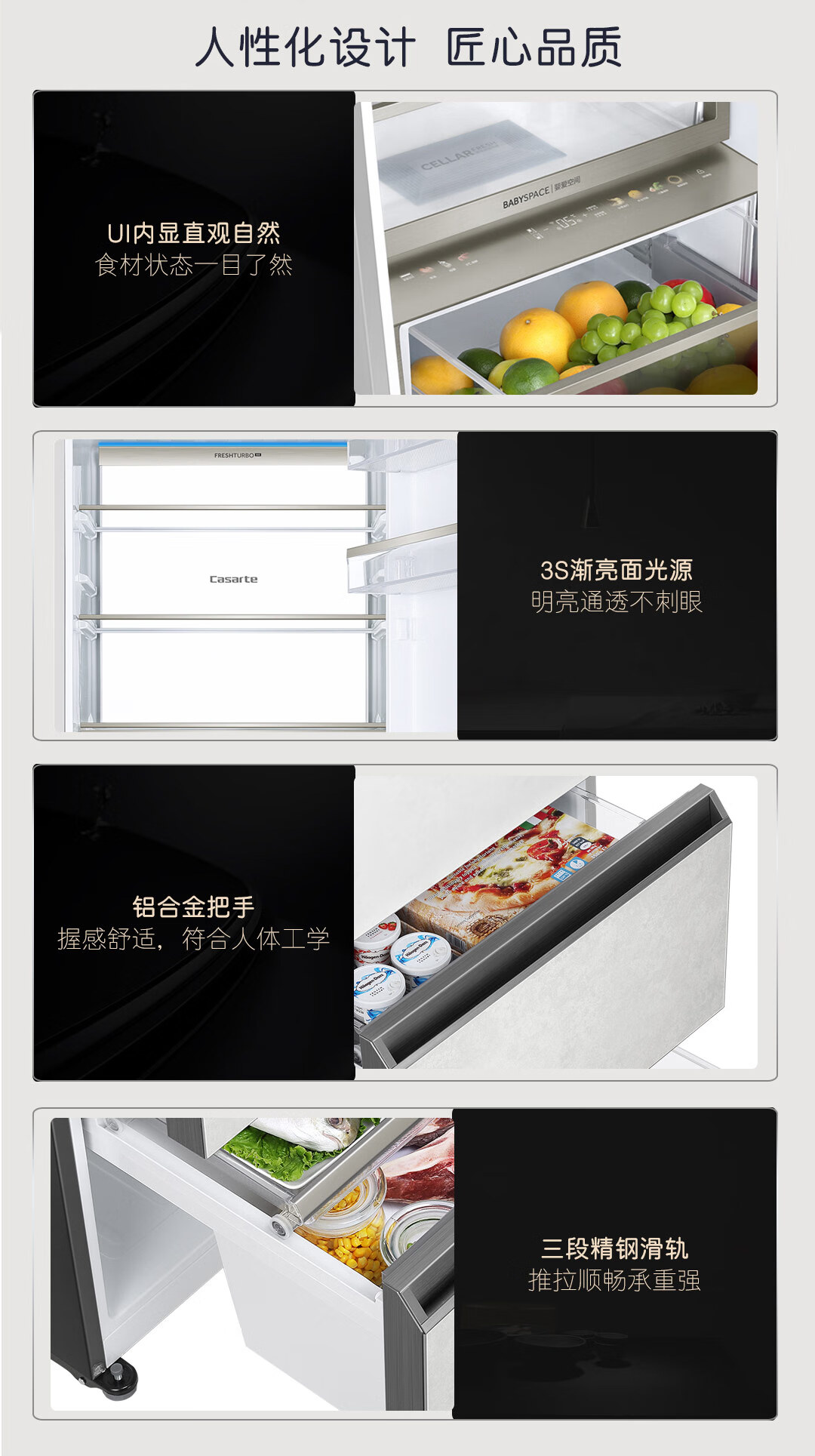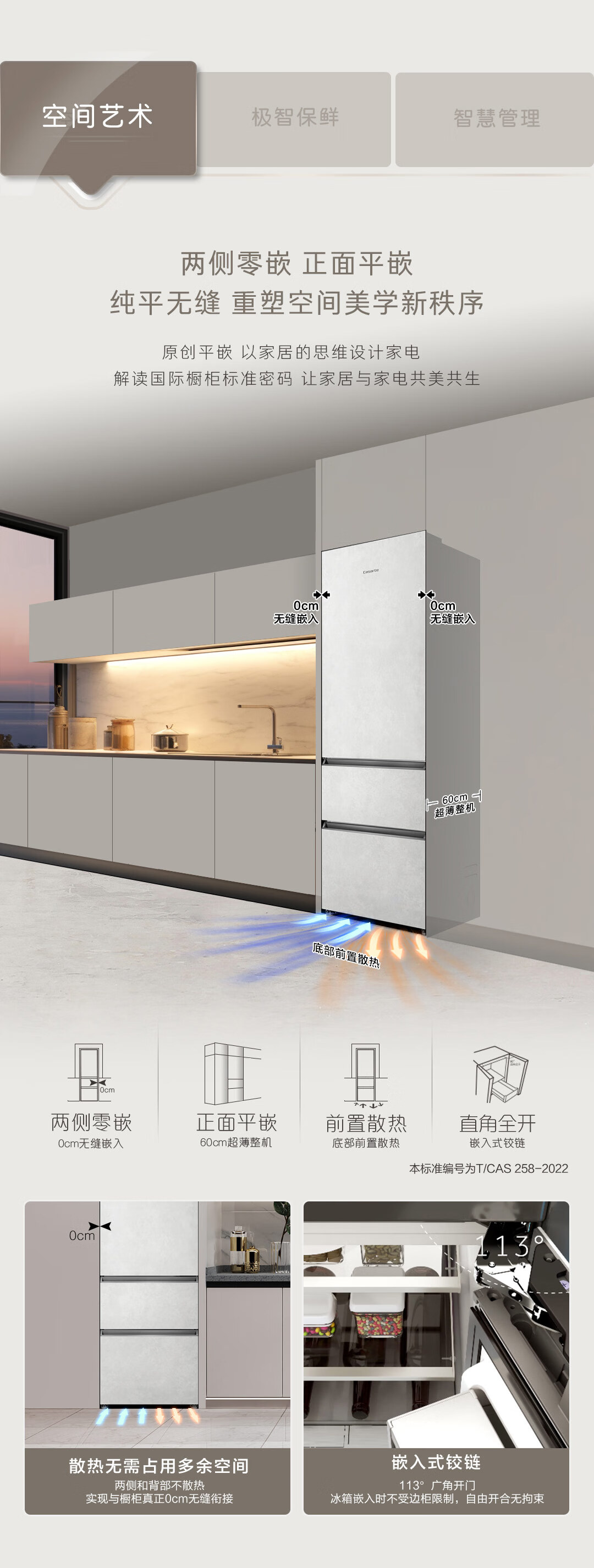 素岩-卡萨帝400升原创平嵌三开门家用超薄嵌入式电冰箱一级能效小型3-4人白色BCD-400WLCI3M4GDU1