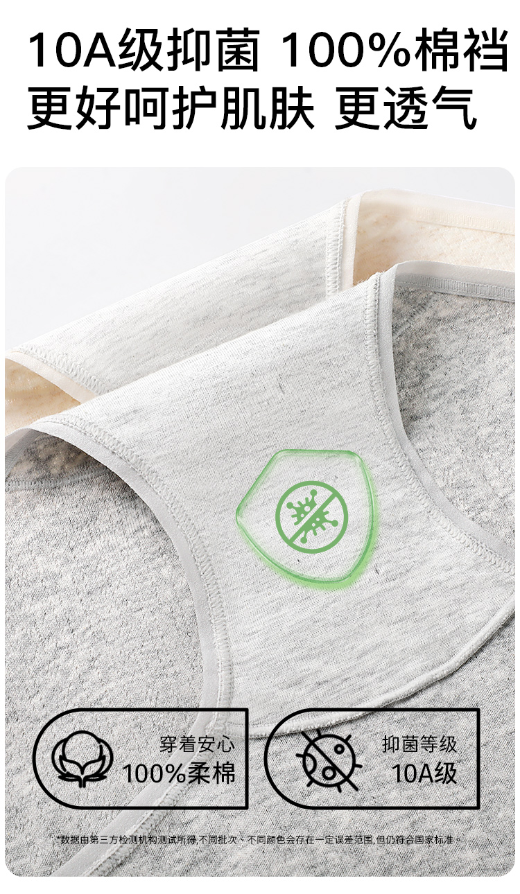 甜酷卡卡 3条装(VIP) 纯棉内裤抑菌100%纯棉裆夏季薄款中腰无痕女士内裤
