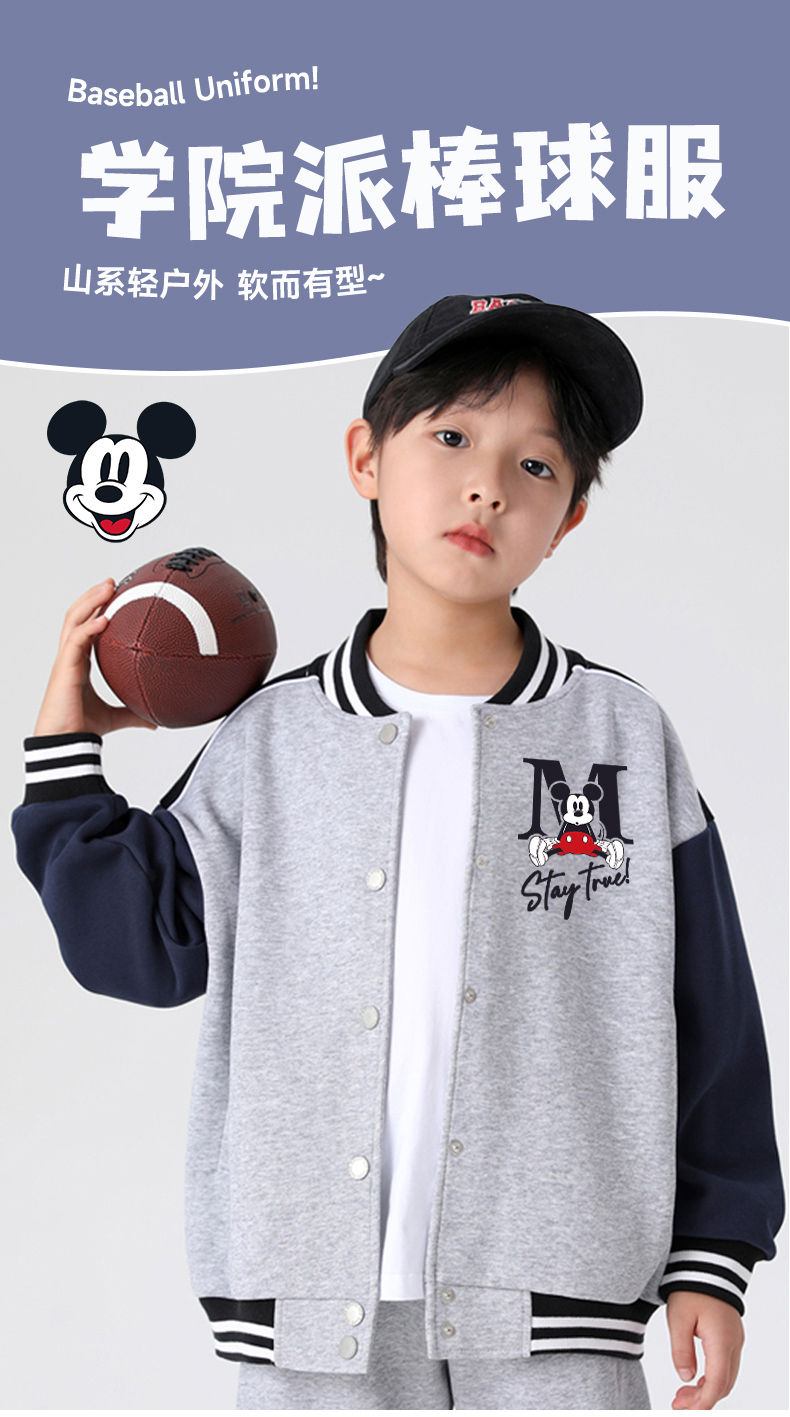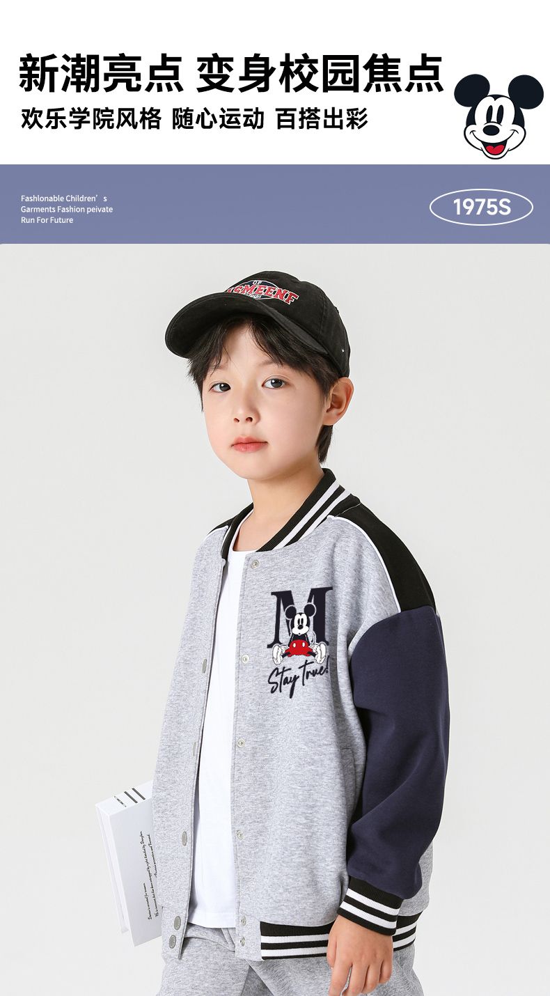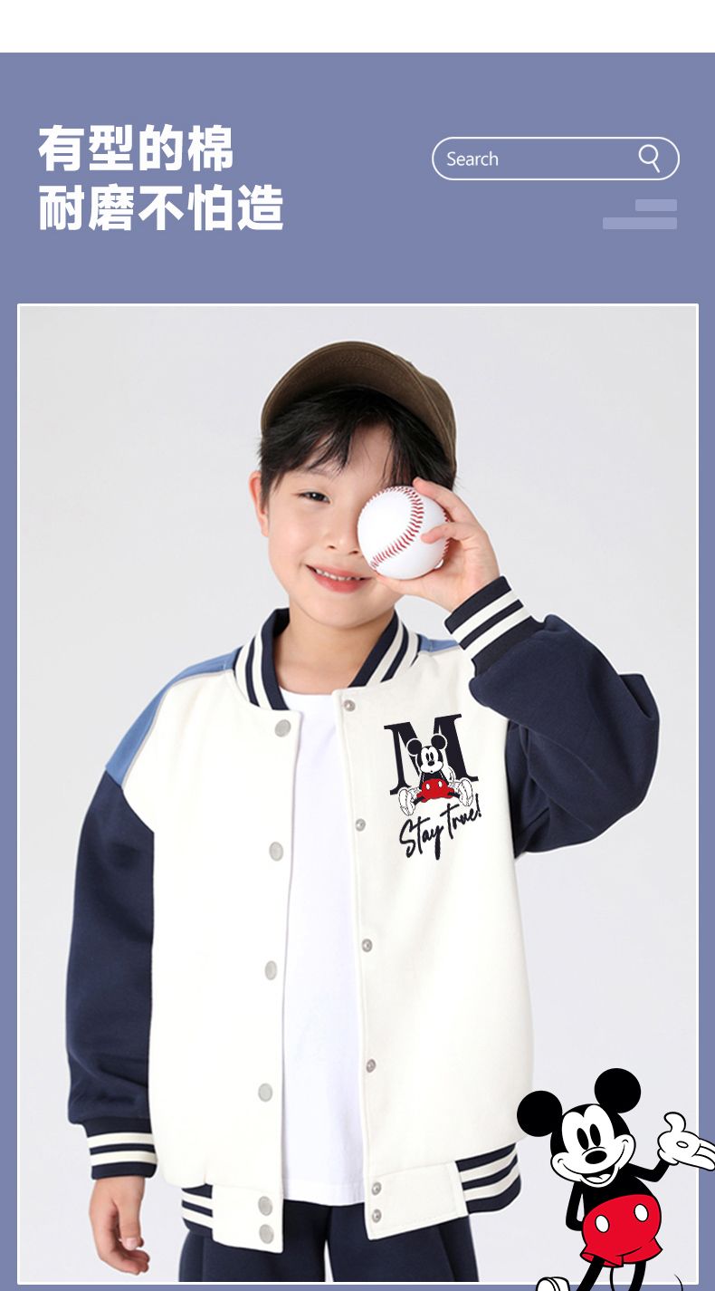 迪士尼男童外套春秋款棒球服2025新款儿童运动上衣帅气男大童夹克