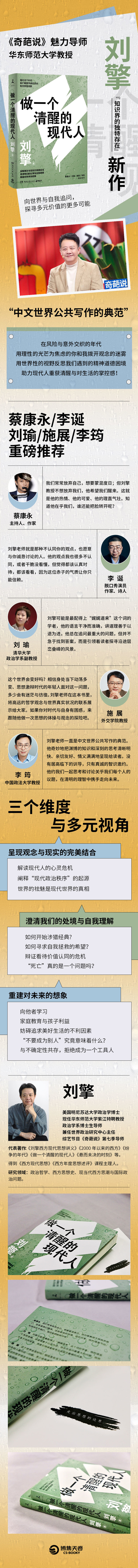 这部作品兼具敏锐的历史意识与深切的现实关怀。刘擎教授结合历史、文化、政治、哲学等众多元素,解读社会发展变化、思想的演进,以求大众在面对这个时代时,能够辨析问题与观念的来龙去脉,澄清我们的处境与自我理解,重建对未来的想象。