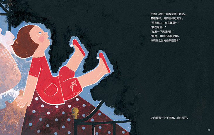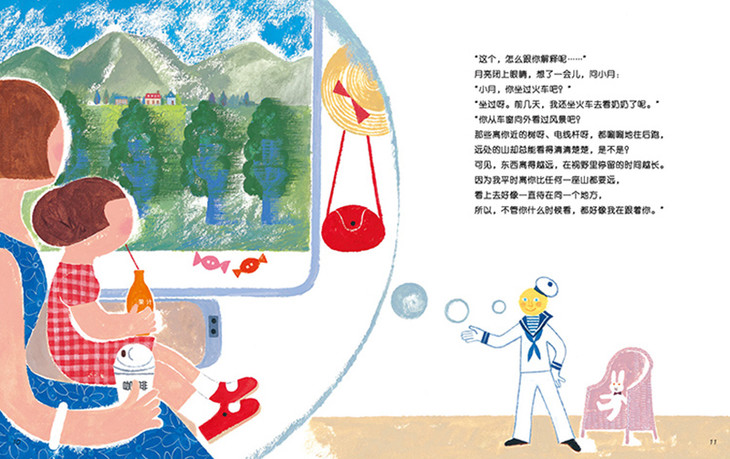 值得一提的是,这本绘本的语言俏皮灵动,画风清新可爱,小女孩儿小月和月亮先生的形象都令人印象深刻,相信会深受孩子们的喜欢!