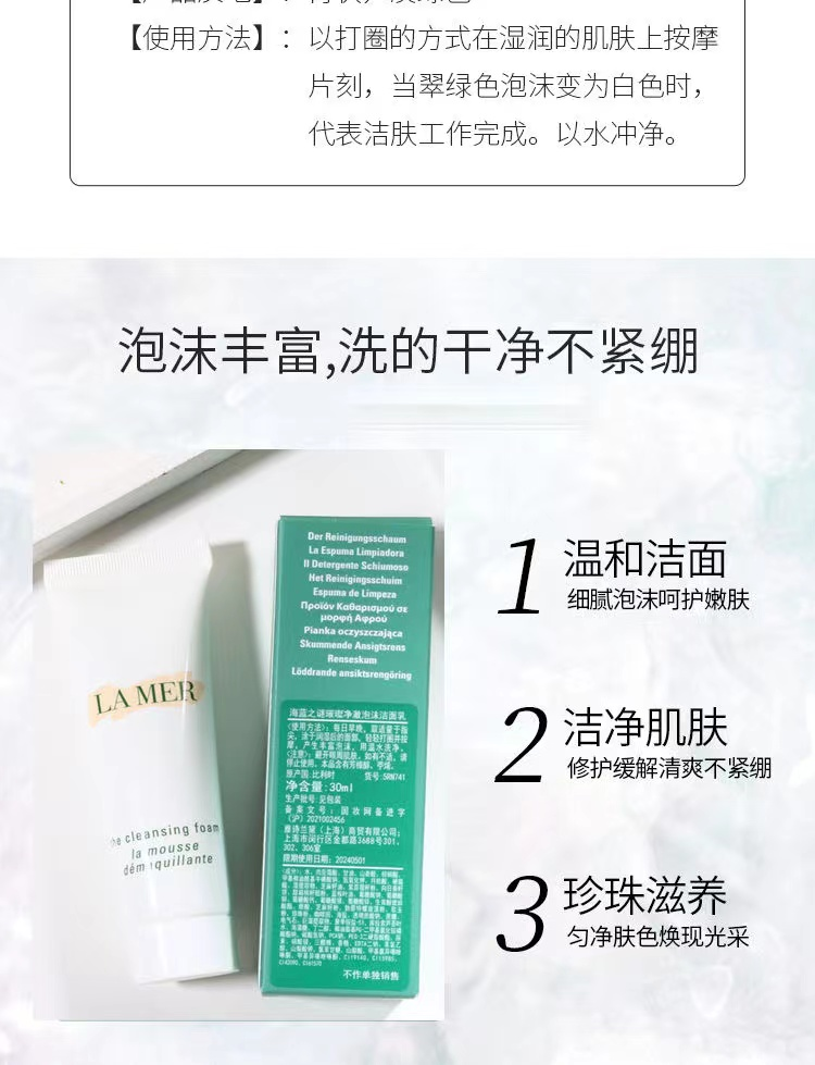 【年终限时大促】【保税仓直发·全球购】LAMER海蓝之谜洗面奶小样 30ml 璀璨净澈泡沫深层洁面