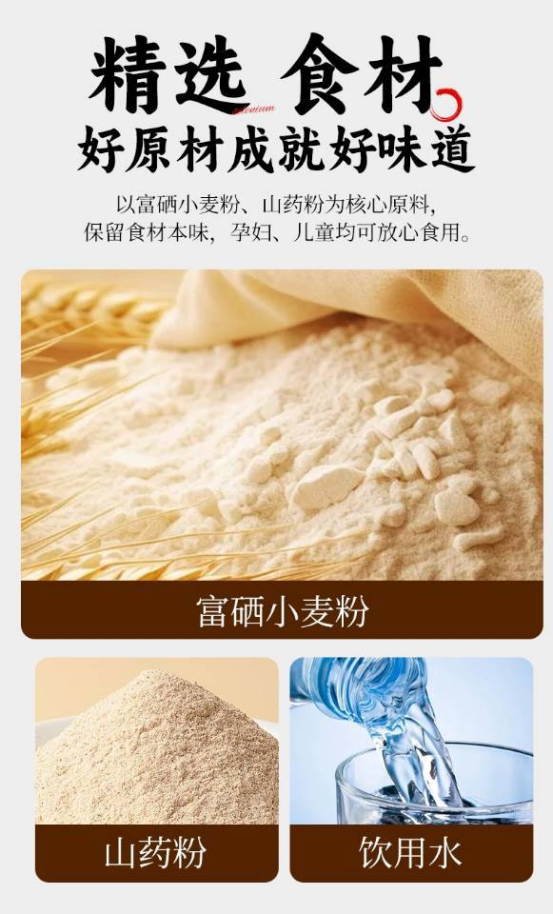 严选优质山药与天然富硒小麦,匠心打造「富硒山药挂面」,以双重营养守护全家人的健康。 硒的力量,健康护航:硒元素具有抗氧化,延缓衰老,增强免疫力,保护心血管系统等功效。 这款富硒挂面,将山药的清甜与麦香融合,口感细腻顺滑。 不论是中老年人,还是上班族,儿童,都非常适合。 每日一碗富硒挂面,补足营养关键一环 自然馈赠,硒养全家 | 富硒山药挂面——让健康从每一餐开始