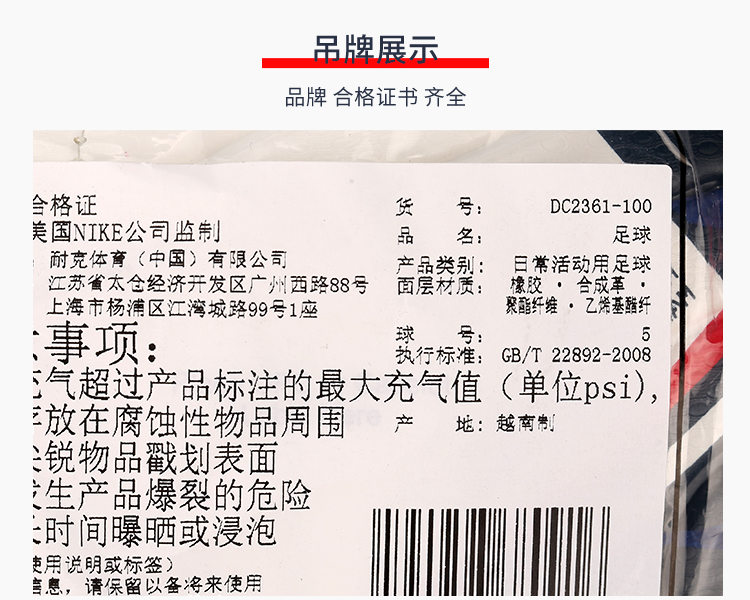 小李子:正品NIKE/耐克巴黎圣日尔曼球迷训练5号足球男DC2361-100