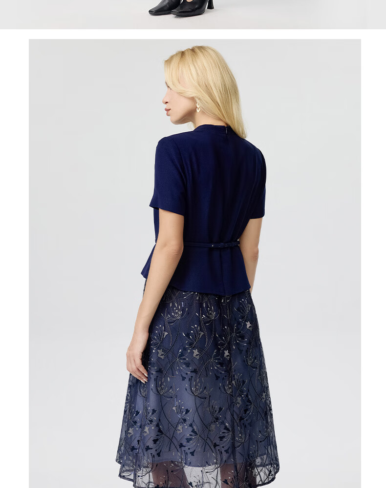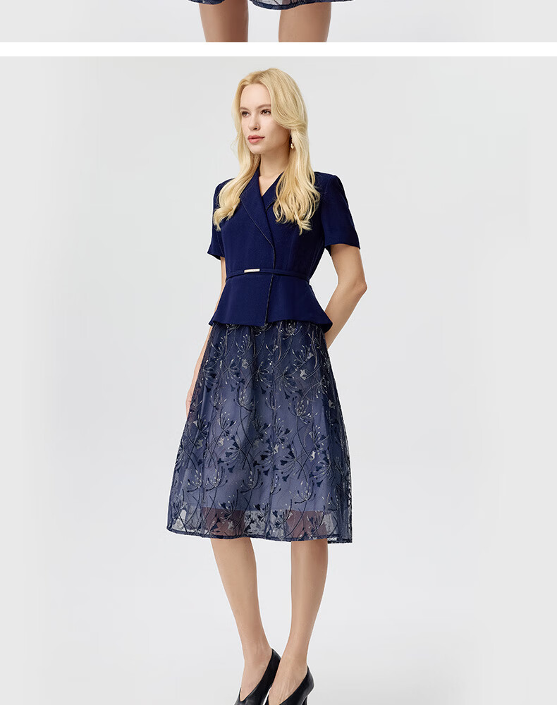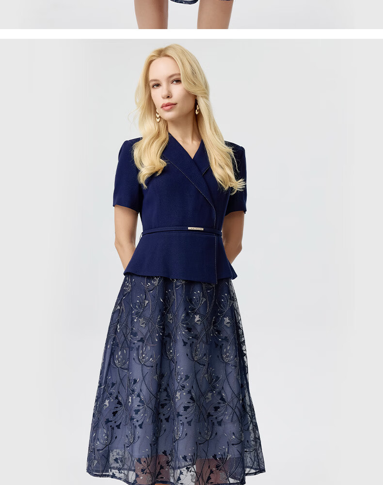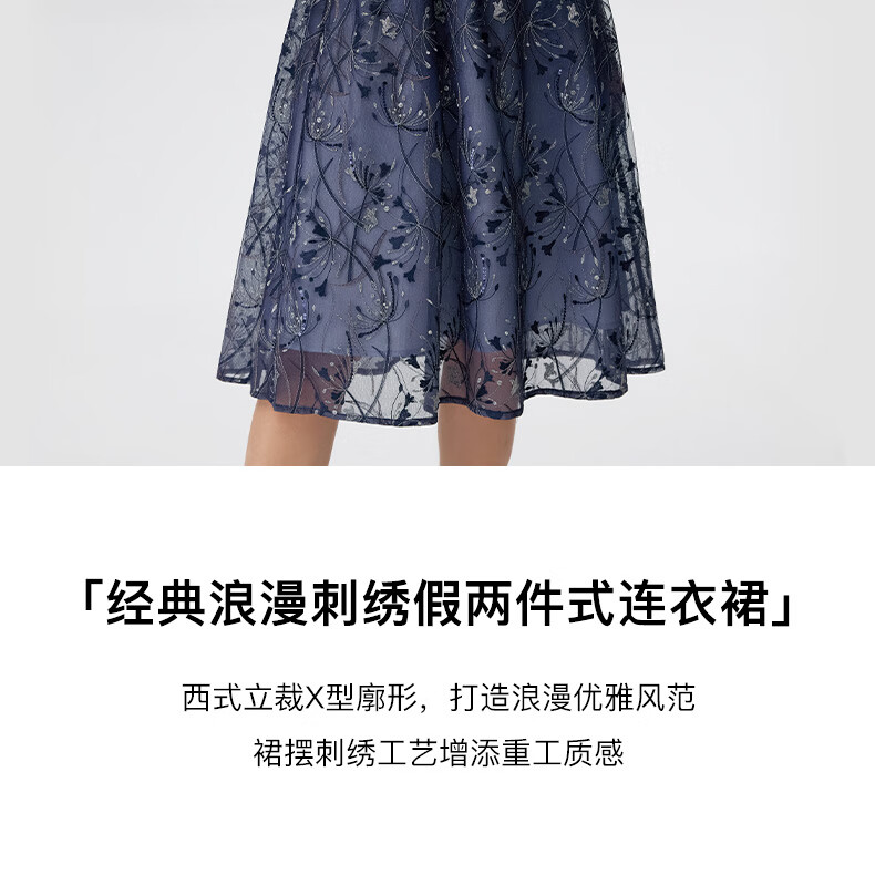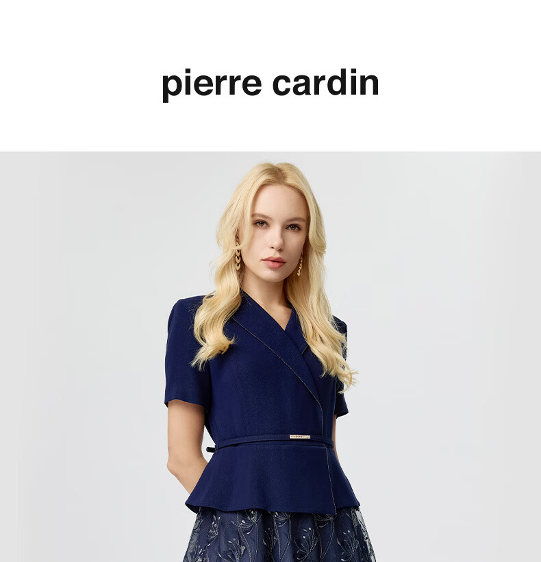 皮尔卡丹女装连衣裙夏季短袖假两件醋酸商务端庄裙子P3221D3130N0