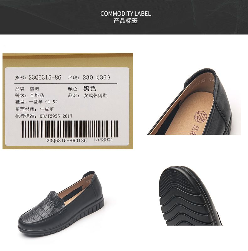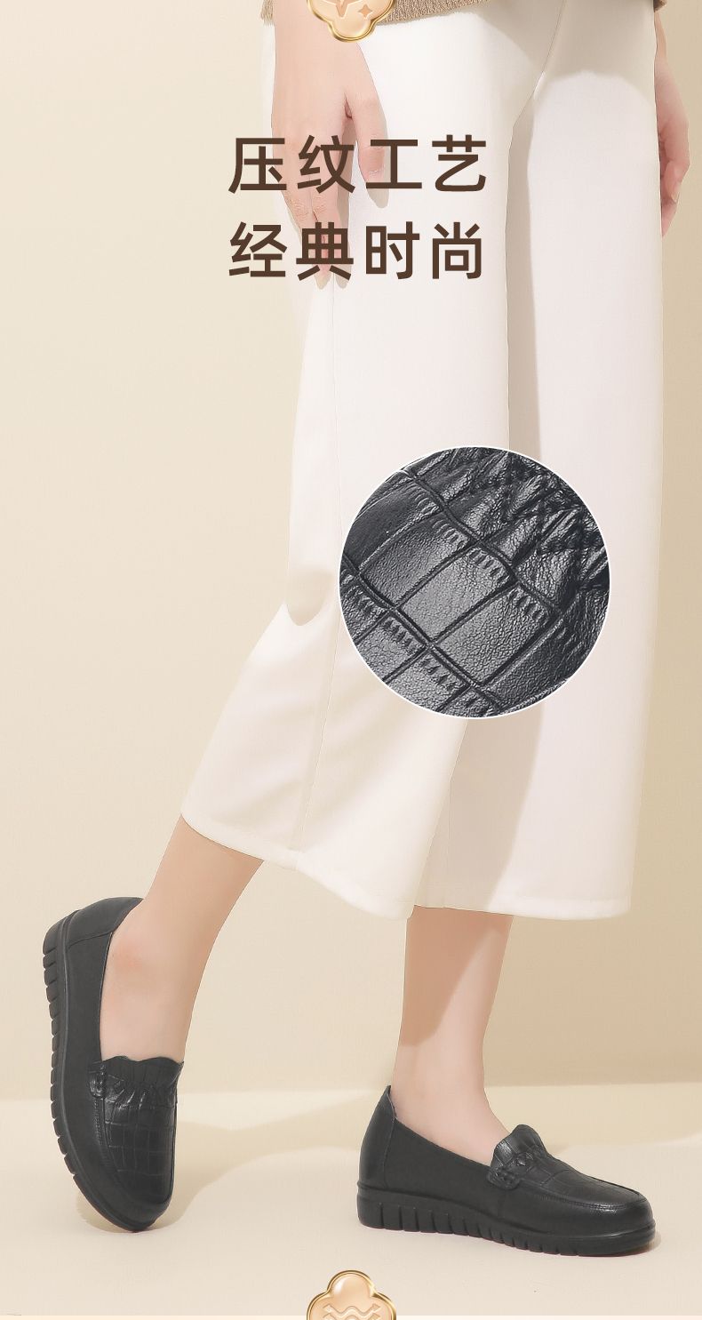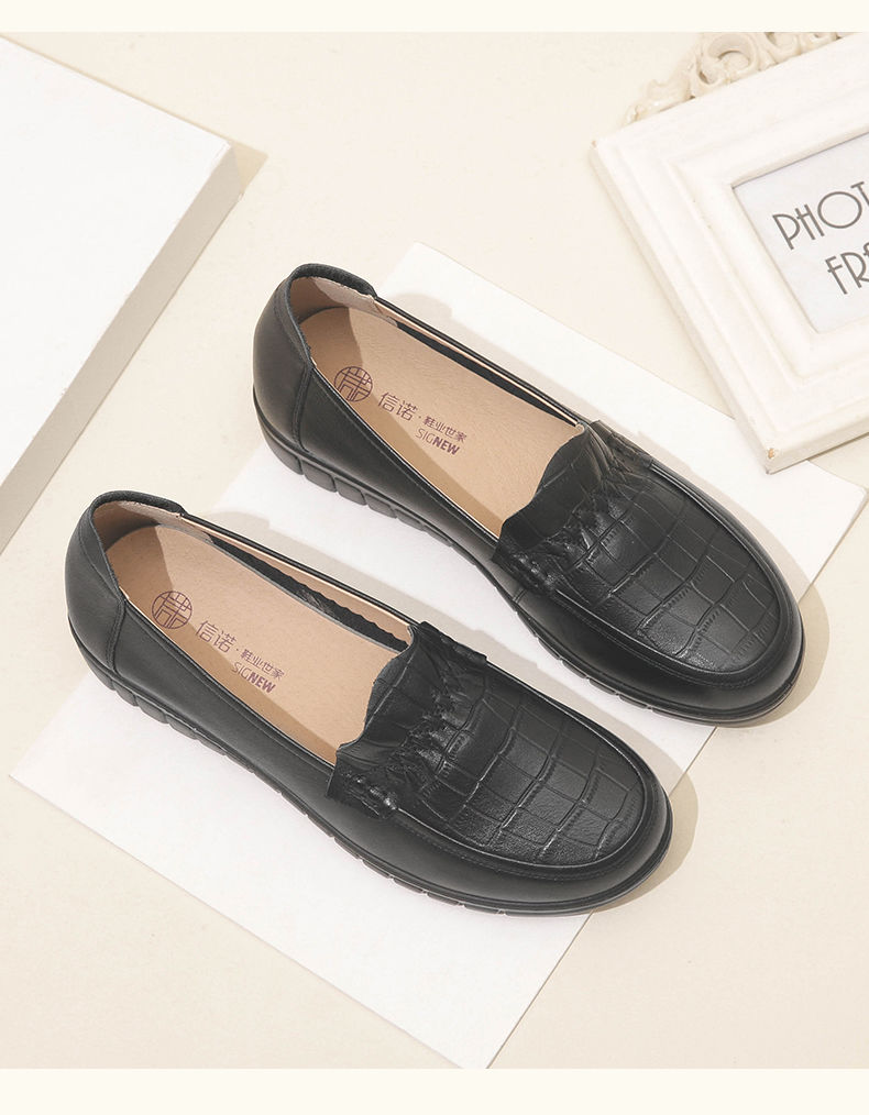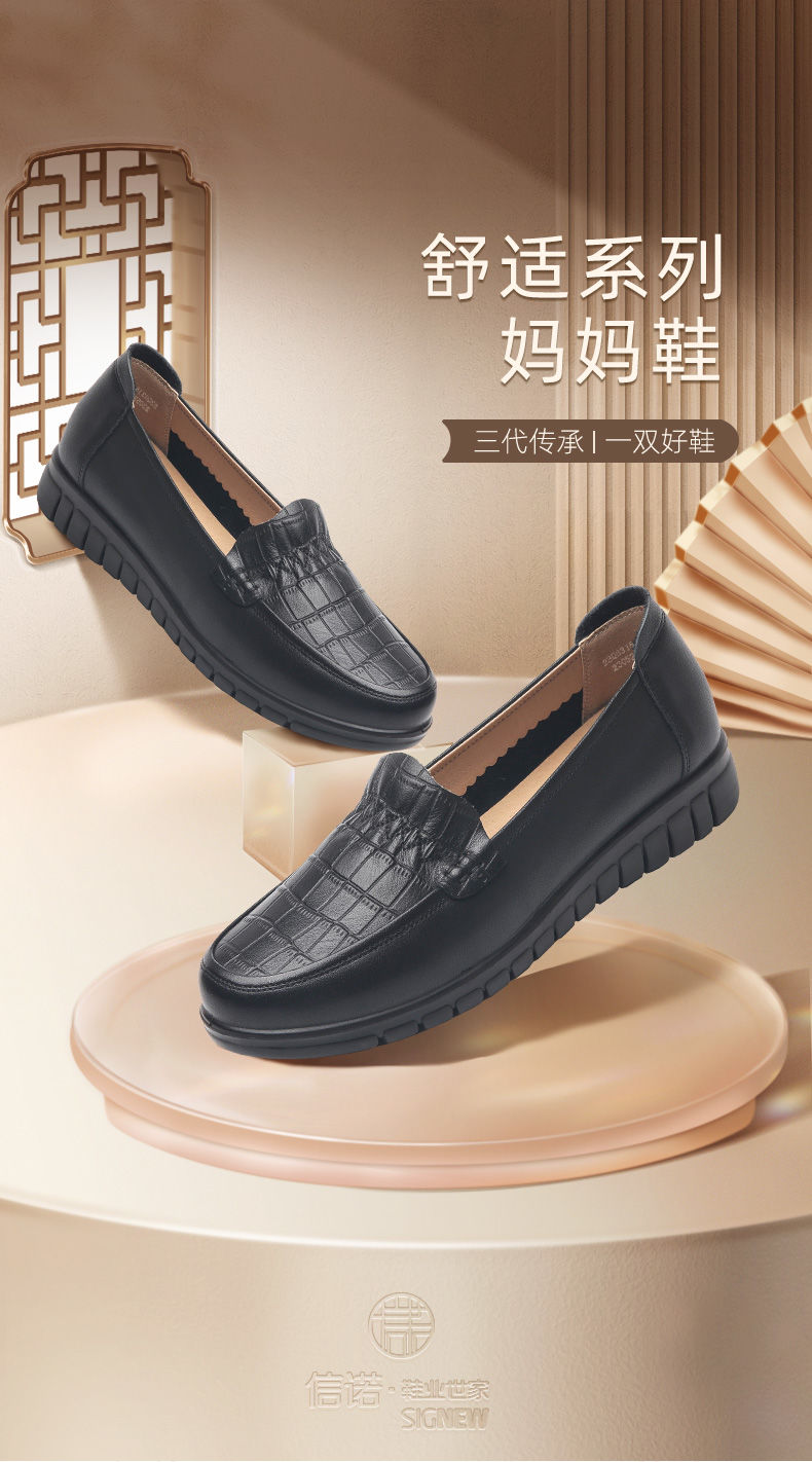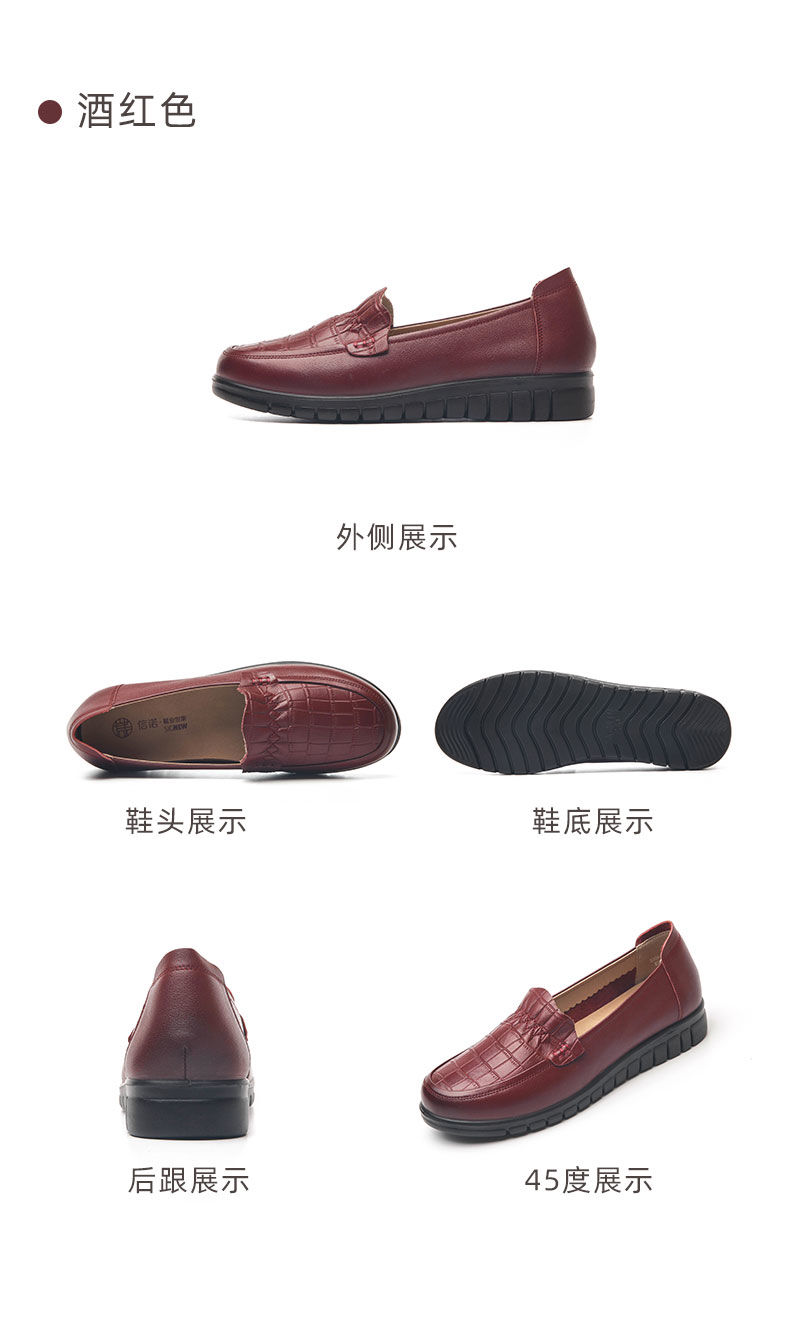 信诺真皮妈妈鞋2023秋新款平底中老年妈妈鞋子休闲舒适软底女单鞋23Q6315-86