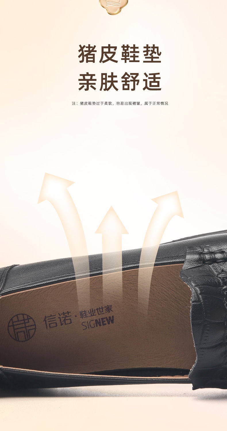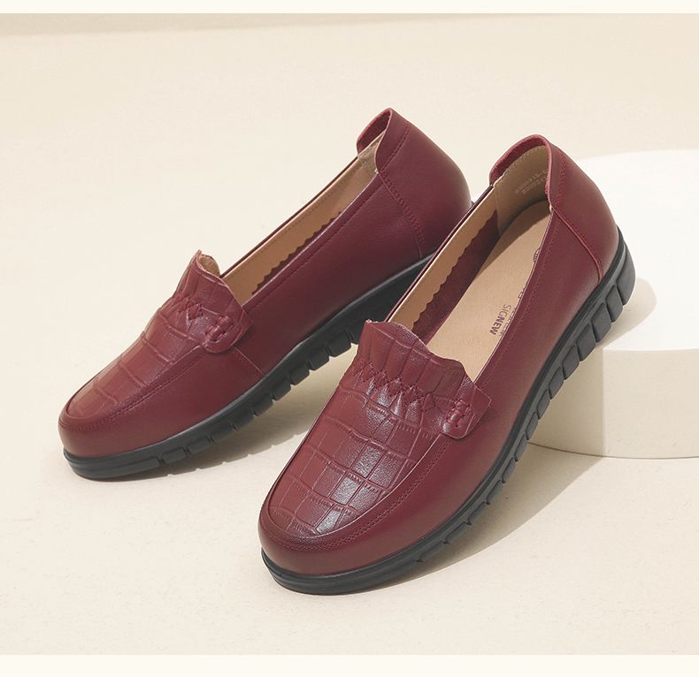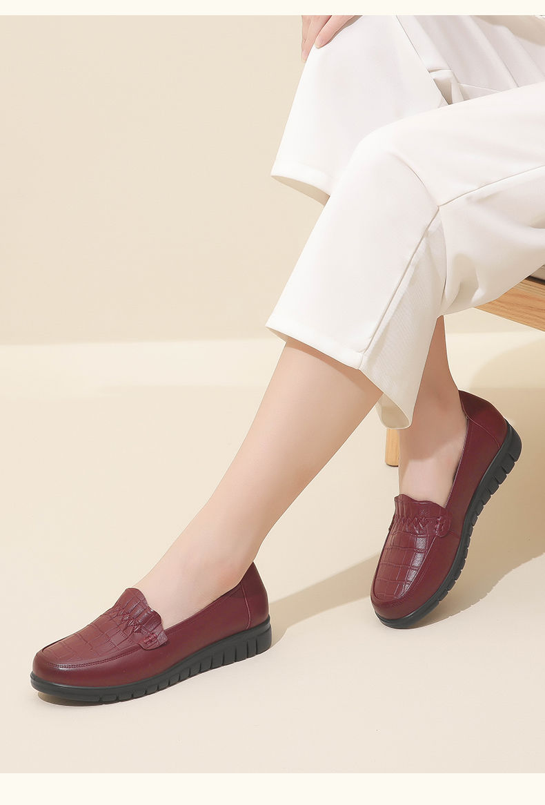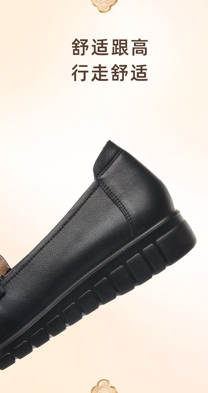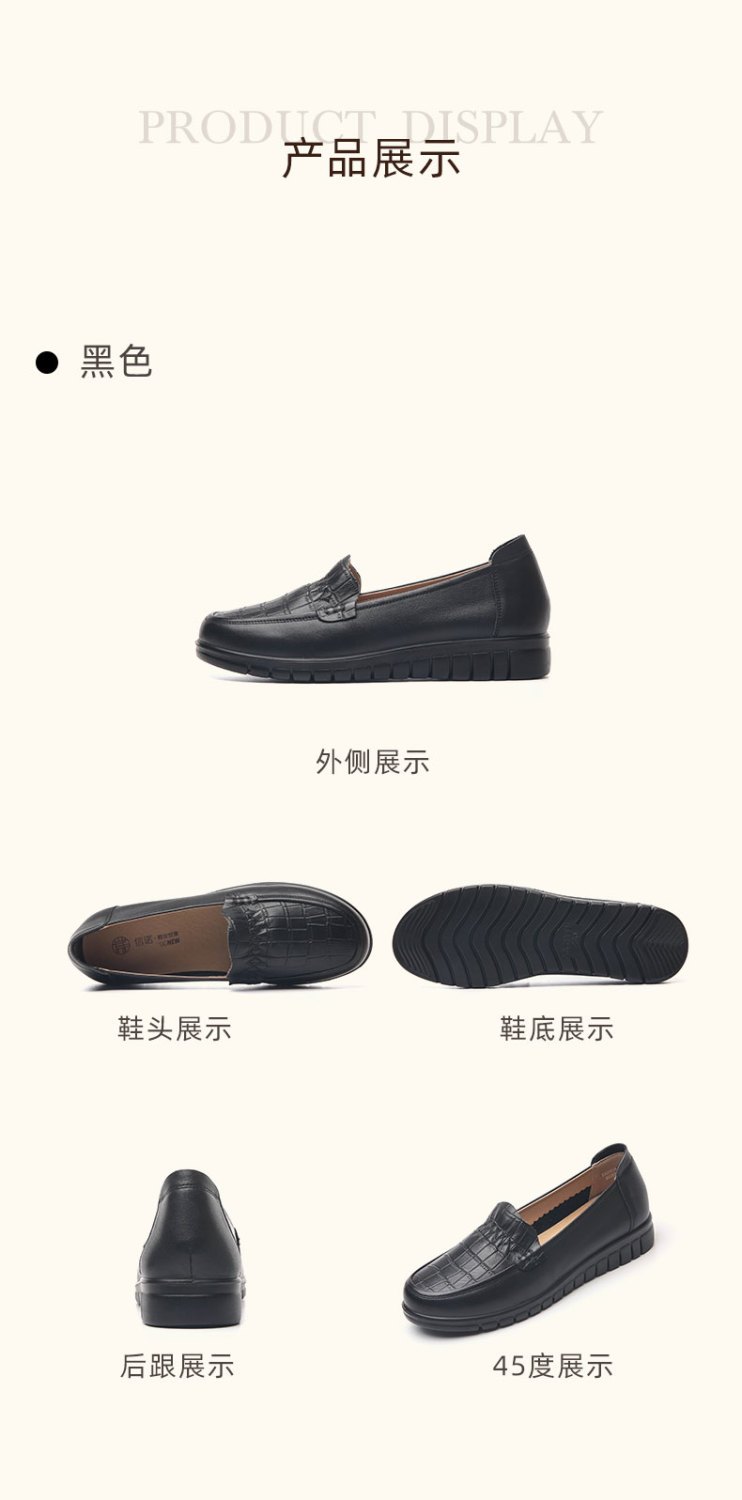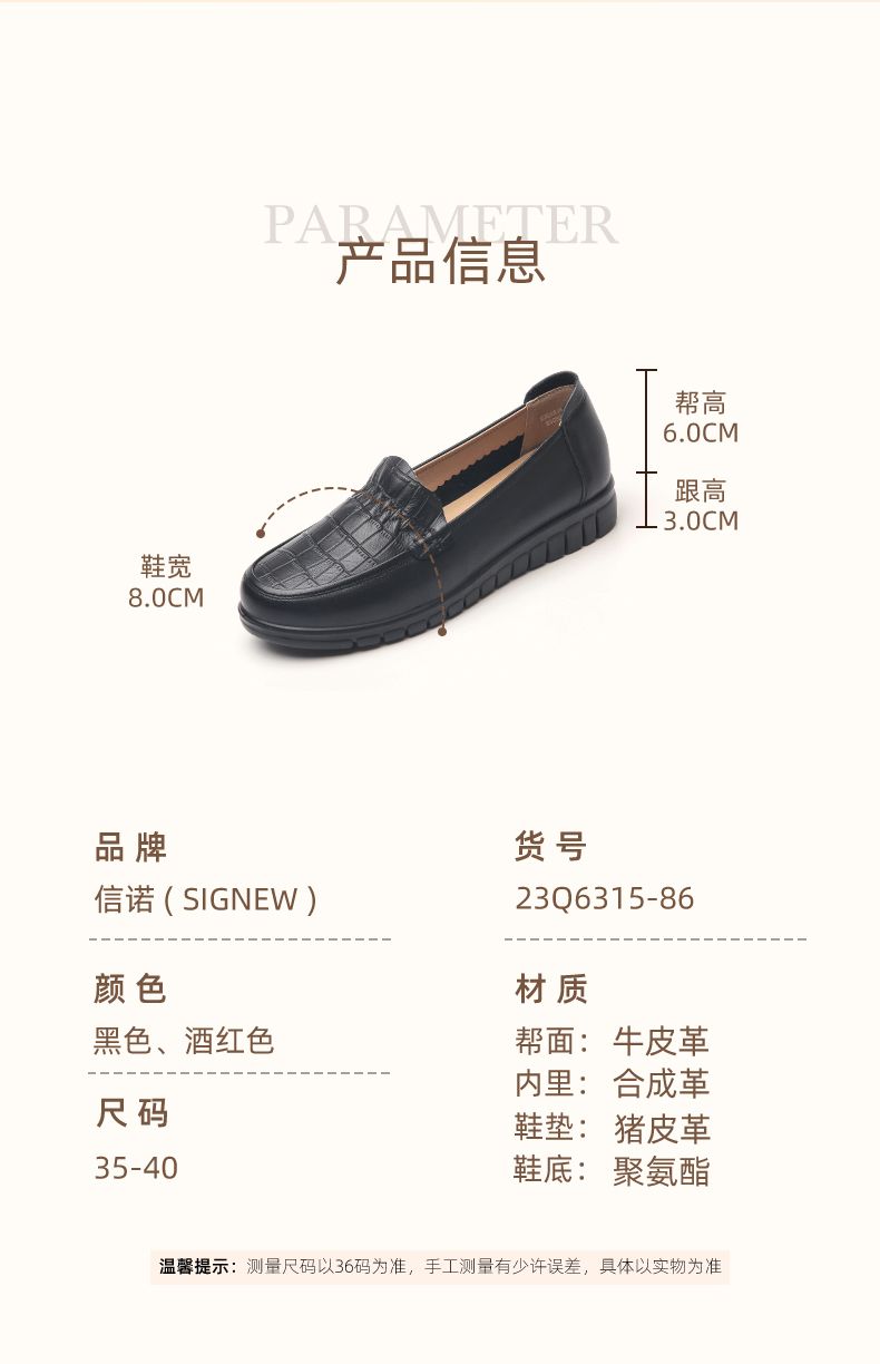 信诺真皮妈妈鞋2023秋新款平底中老年妈妈鞋子休闲舒适软底女单鞋23Q6315-86