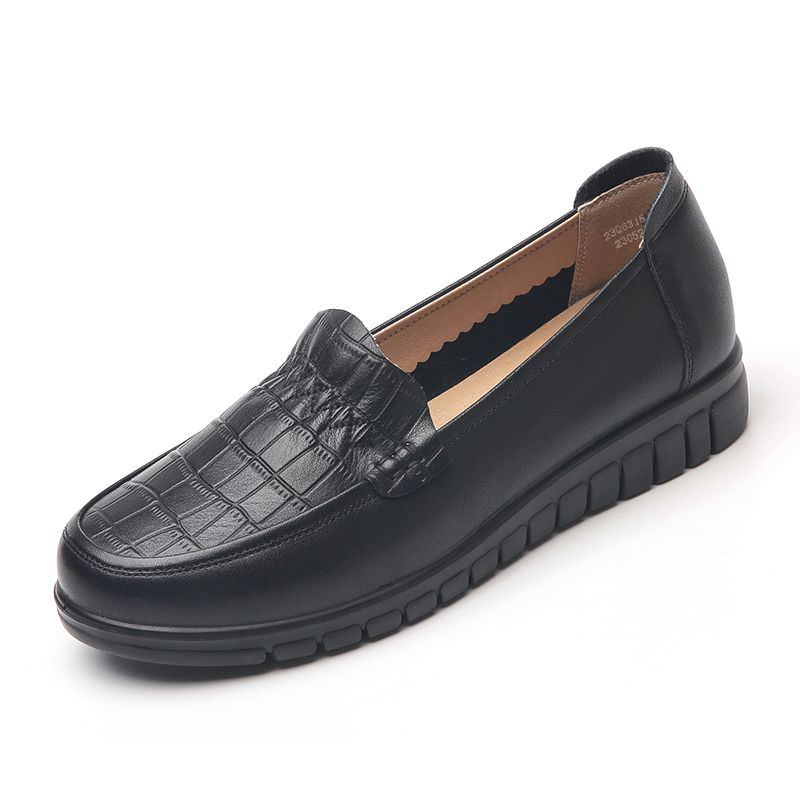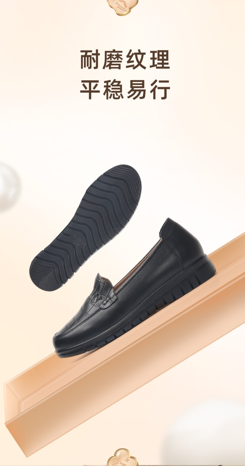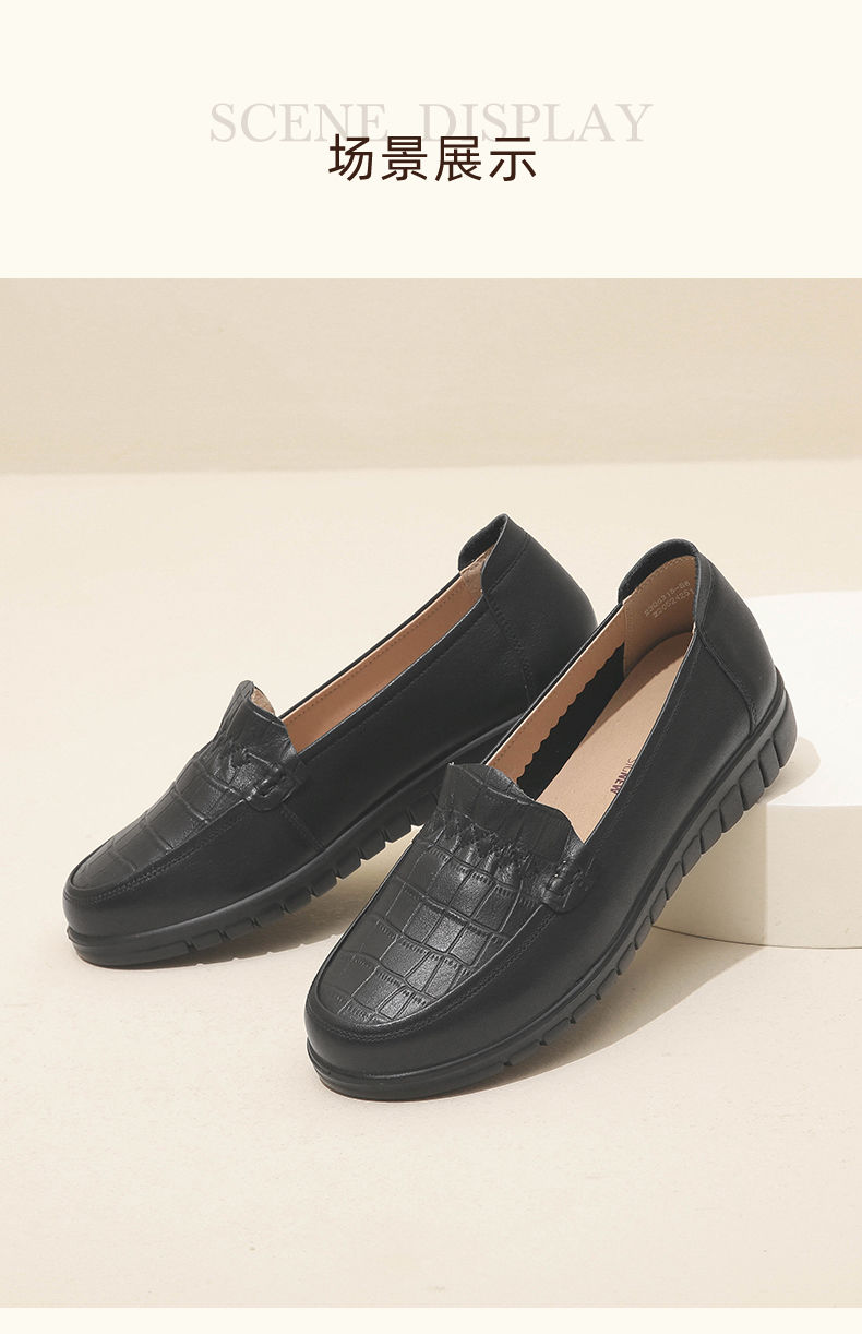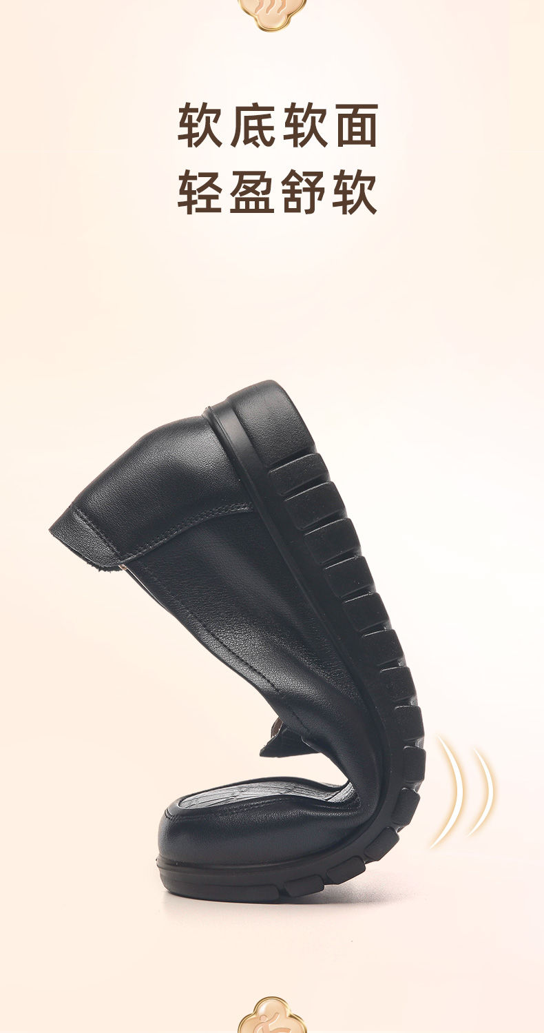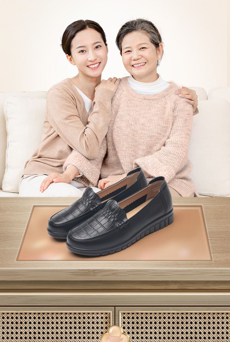 信诺真皮妈妈鞋2023秋新款平底中老年妈妈鞋子休闲舒适软底女单鞋23Q6315-86