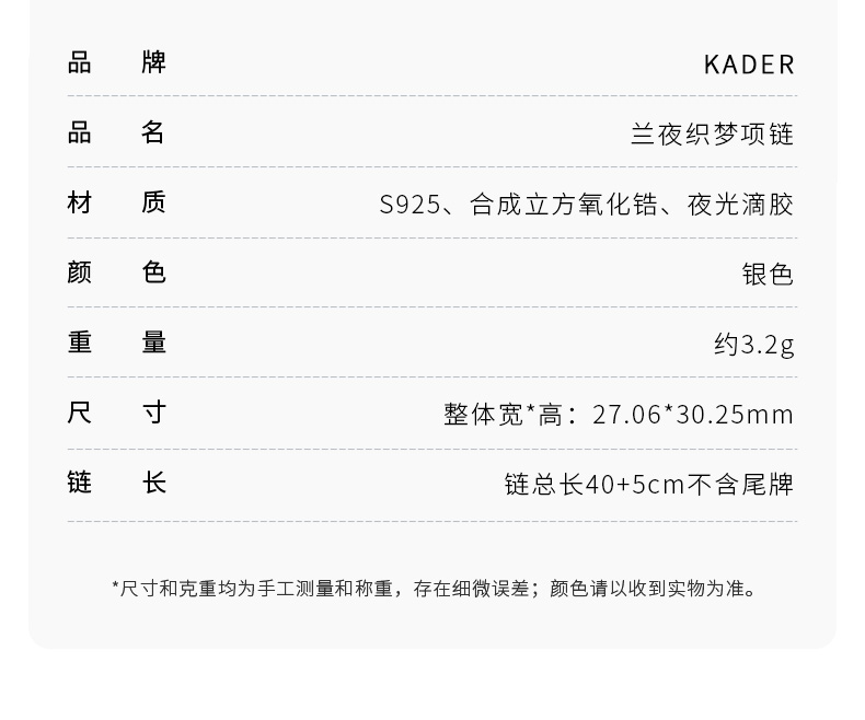 KADER卡蒂罗夜光织梦项链925银 锁骨链女轻奢小众时尚生日礼物送女友送闺蜜纪念日礼物