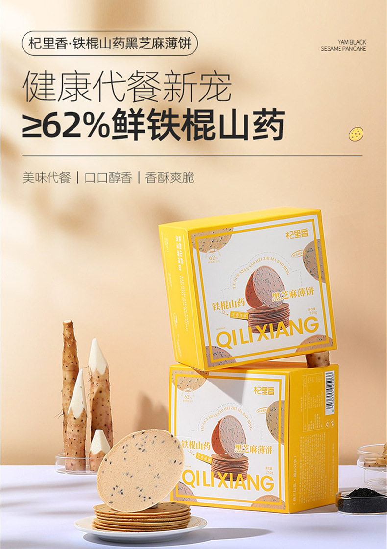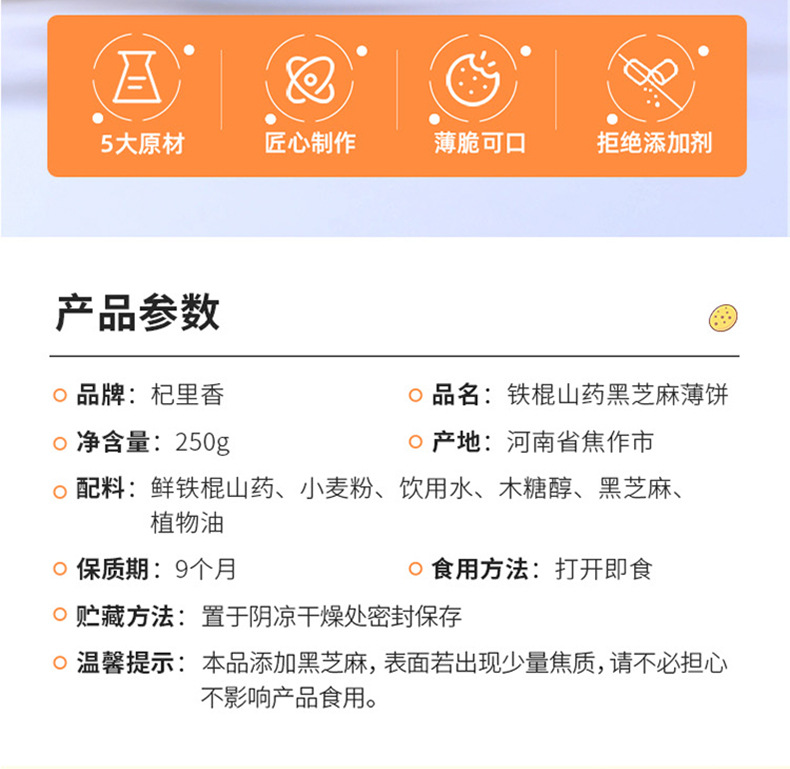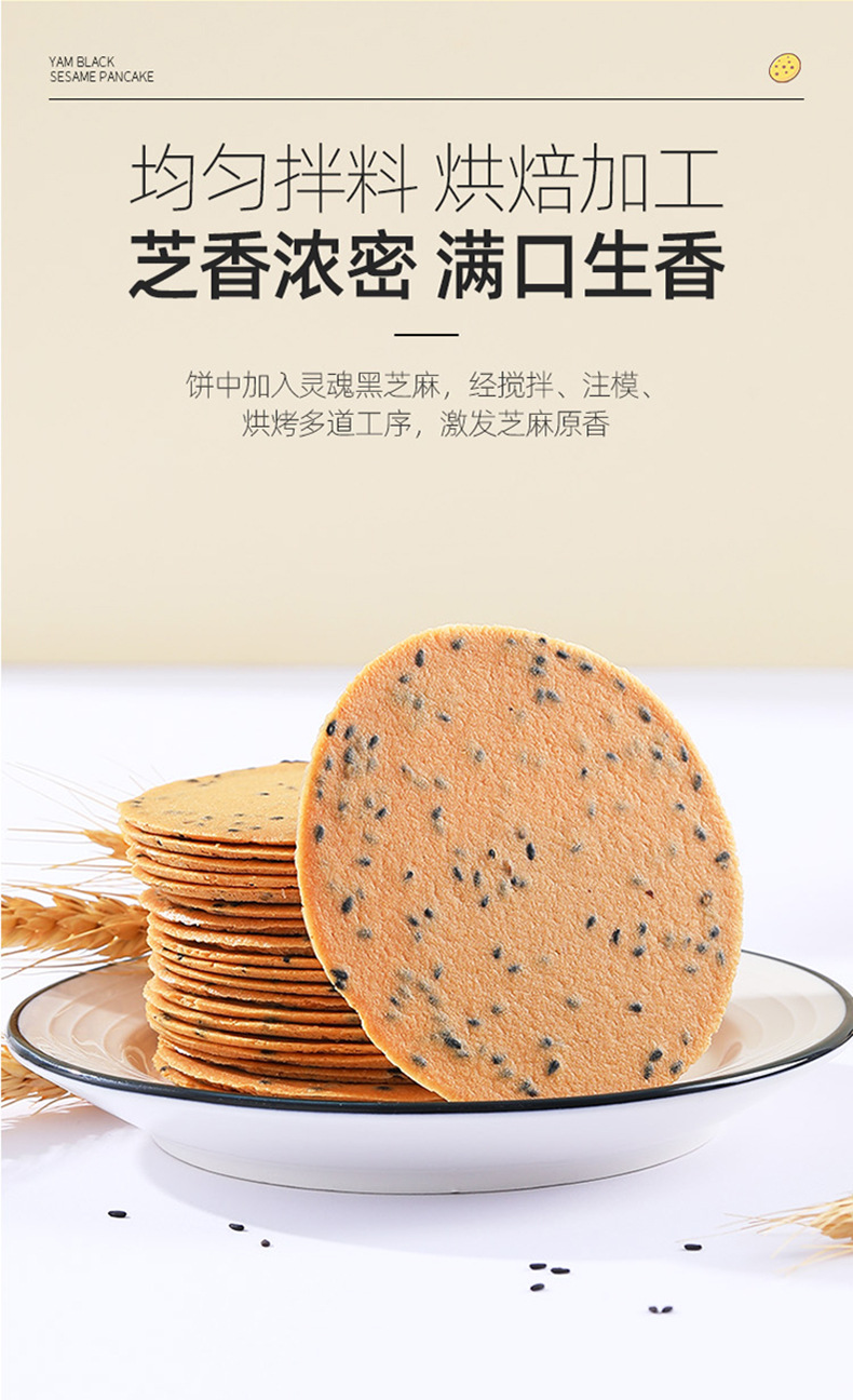 【口口醇香!铁棍山药黑芝麻薄饼】≥62%鲜铁棍山药与芝麻配比 芝香浓密 满口浓香! 慢火烘烤非油炸 好吃更健康,独立小包装,干净卫生,办公日常休闲健康零食Y