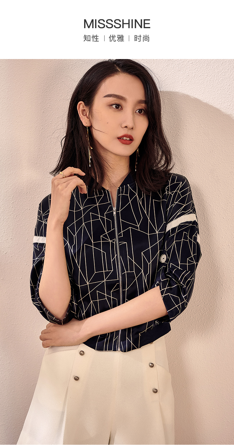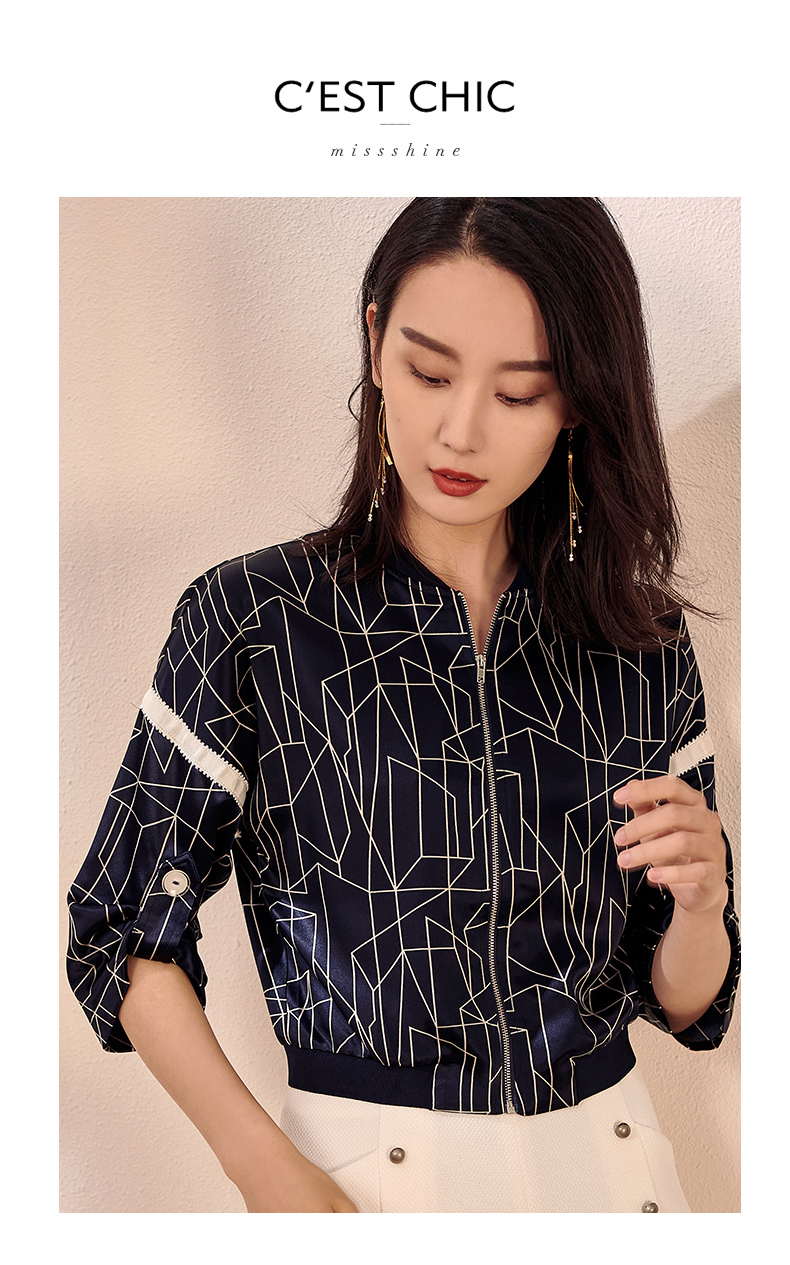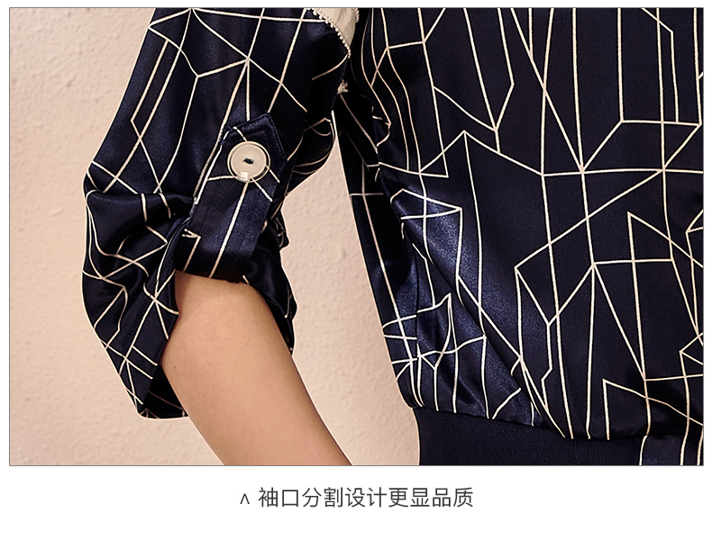 剩S/M/L 拼接醋酸印花秋装新款简约休闲百搭棒球服醋酸短外套女