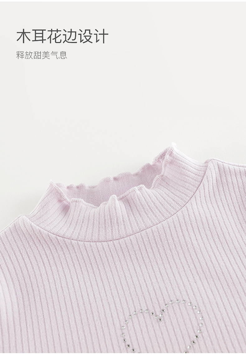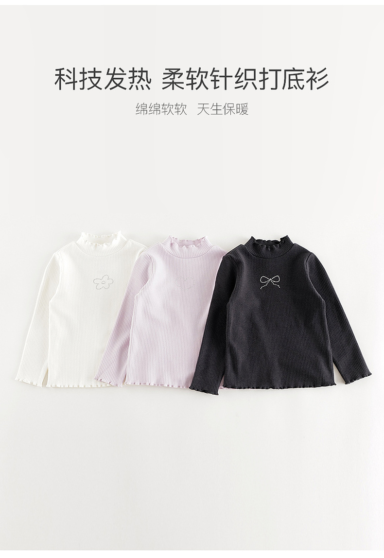 【科技发热】马克珍妮女童木耳花边打底衫2024年秋季新款241357