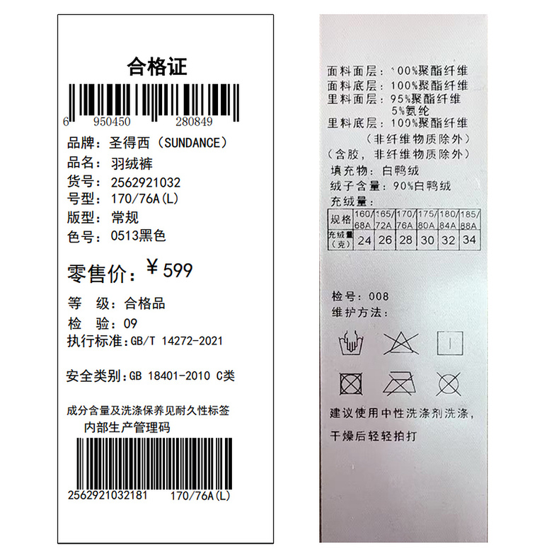 【鸭绒】圣得西2025年冬季男女同款羽绒裤加厚加绒休闲松紧长裤