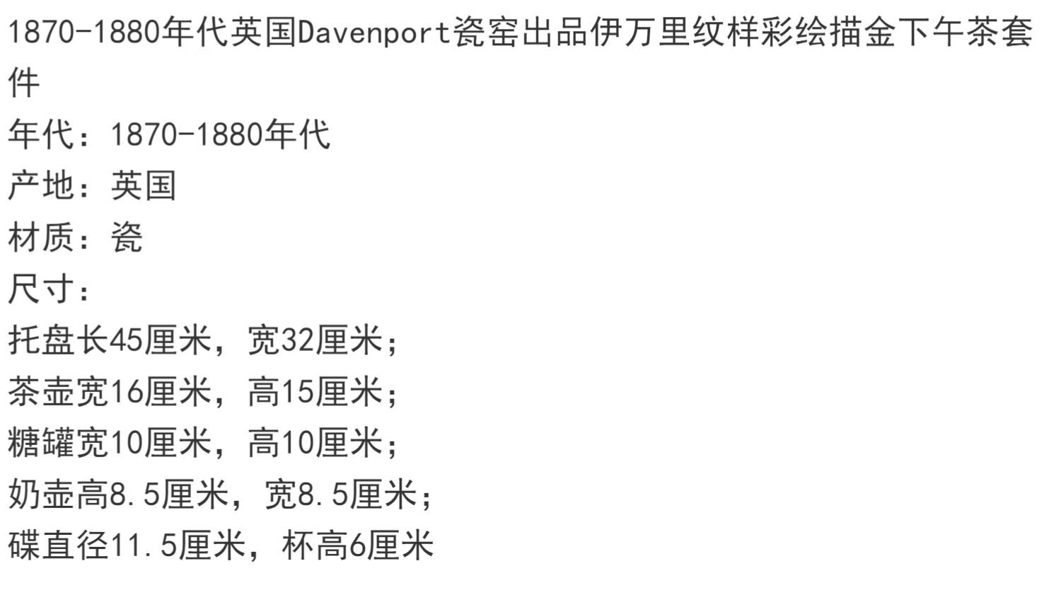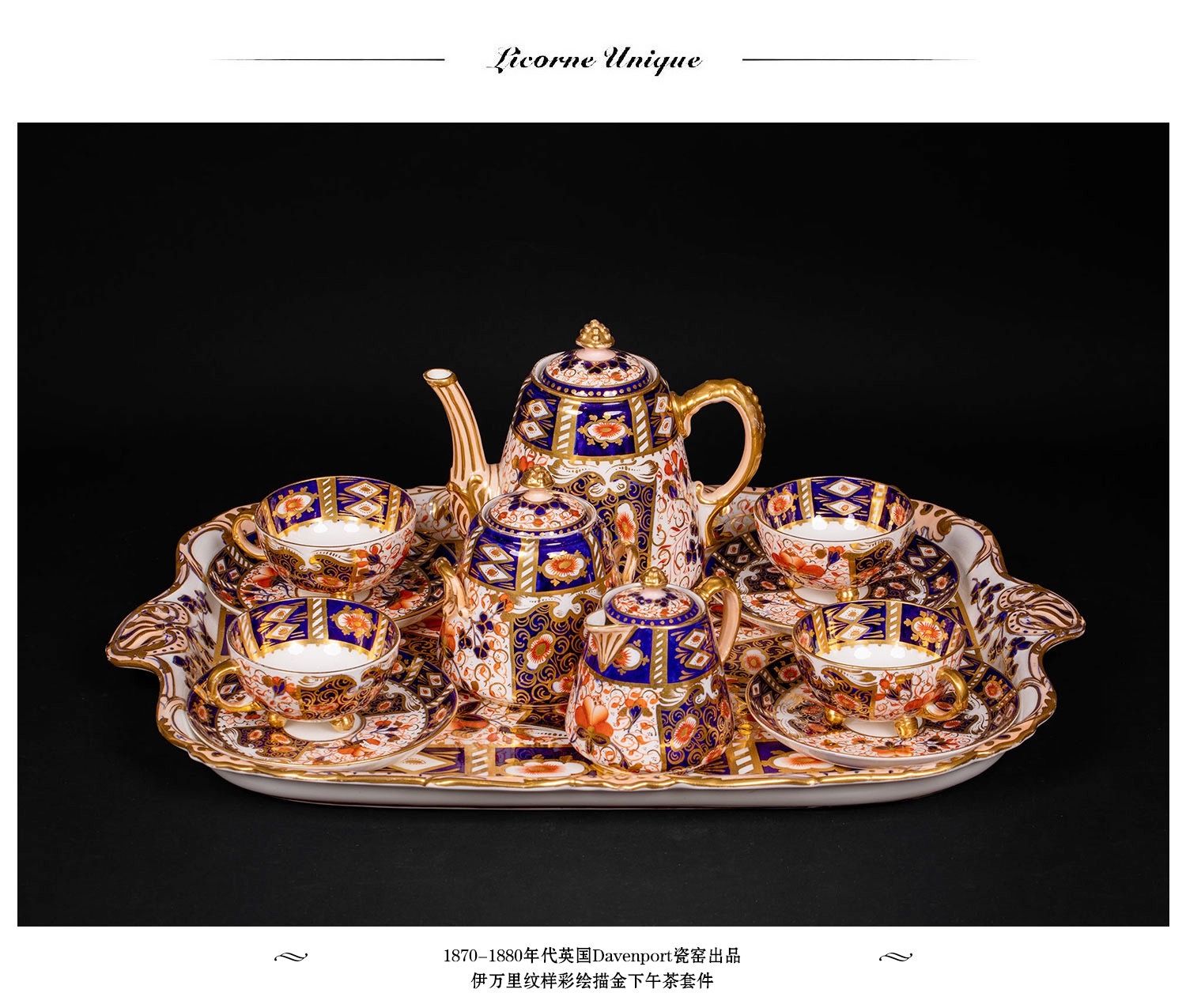 独角鹿西洋古董Davenport伊万里纹样彩绘描金4人下午茶瓷器套装