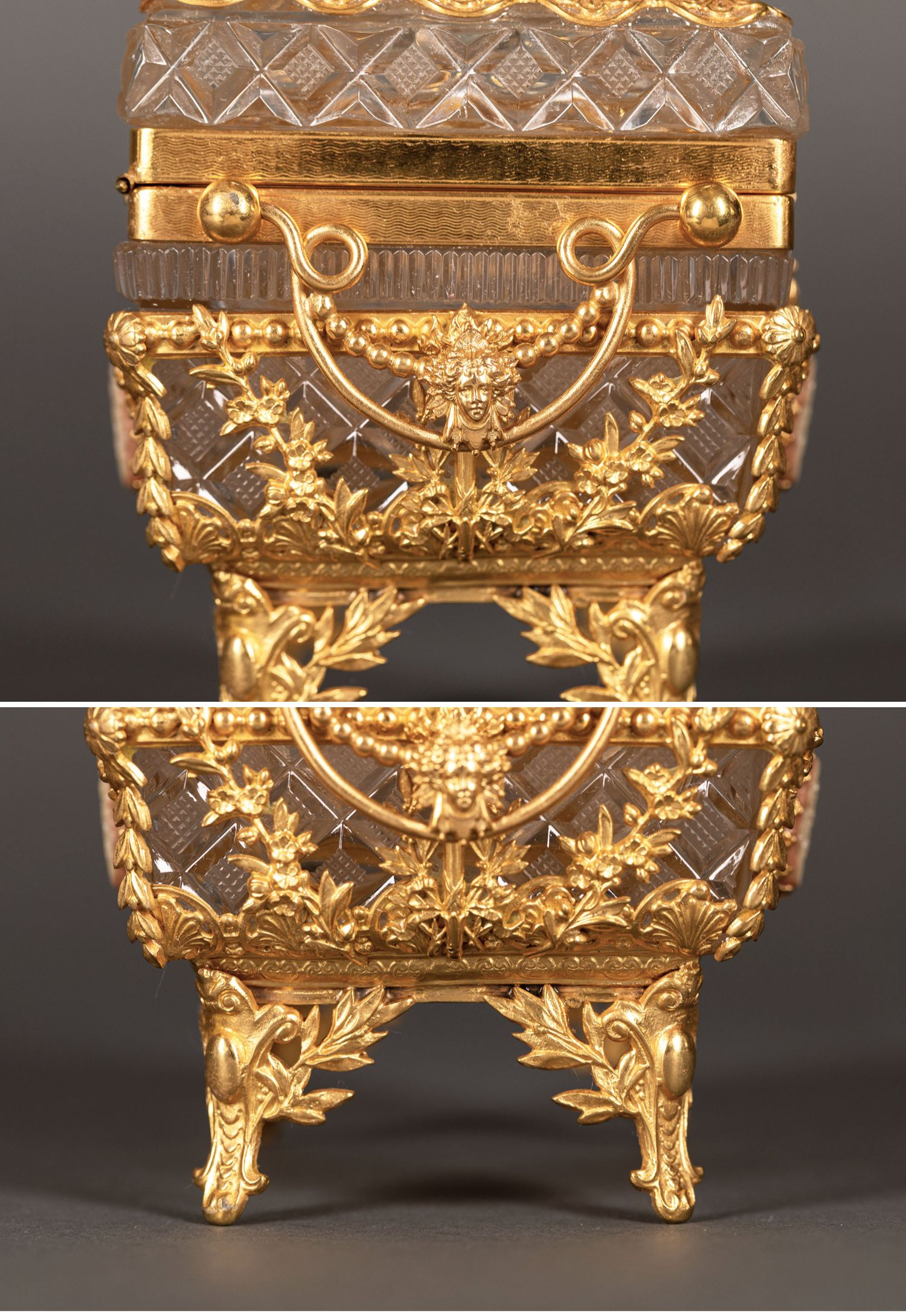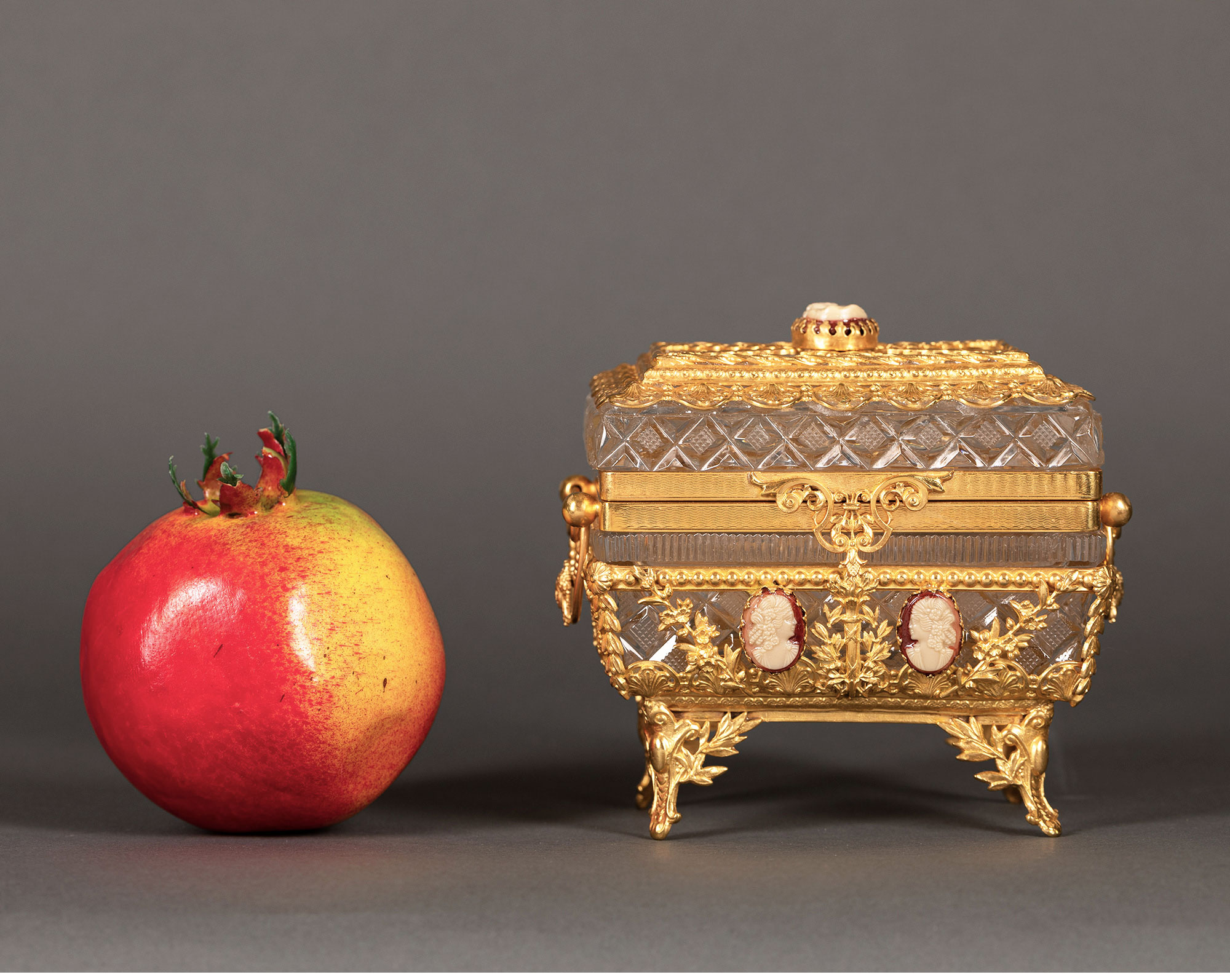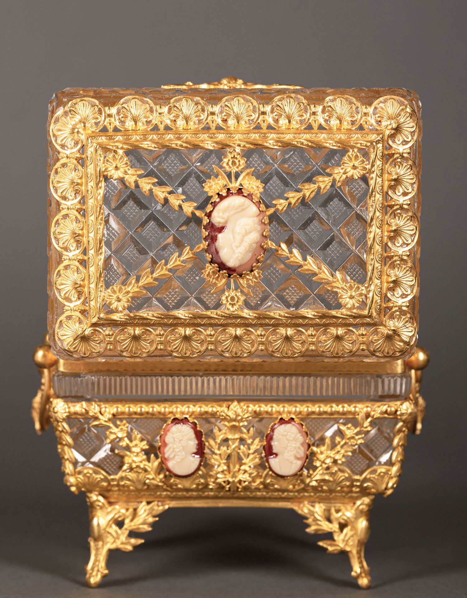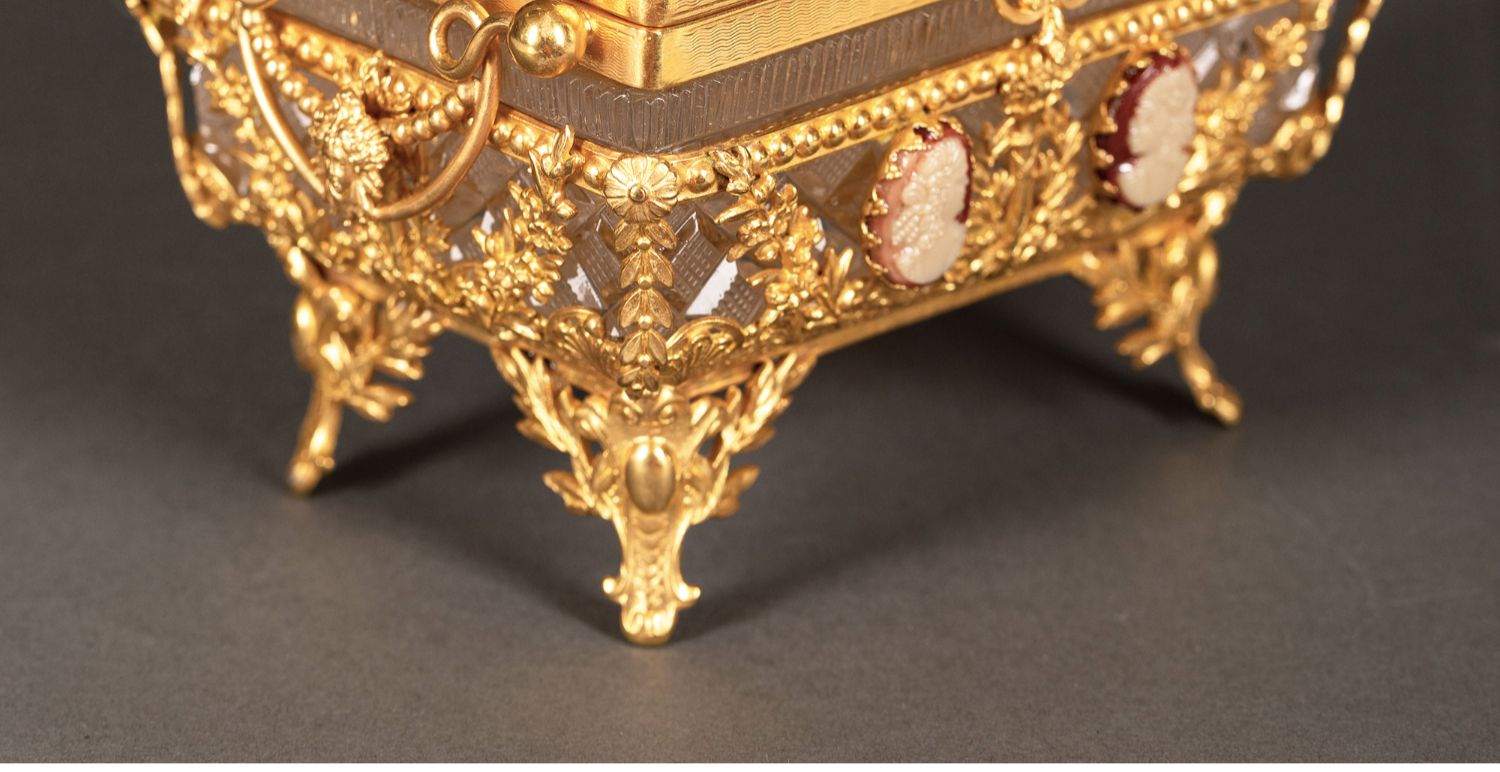 独角鹿西洋古董路易十六风铜鎏金卡梅奥Cameo浮雕水晶珍宝首饰盒