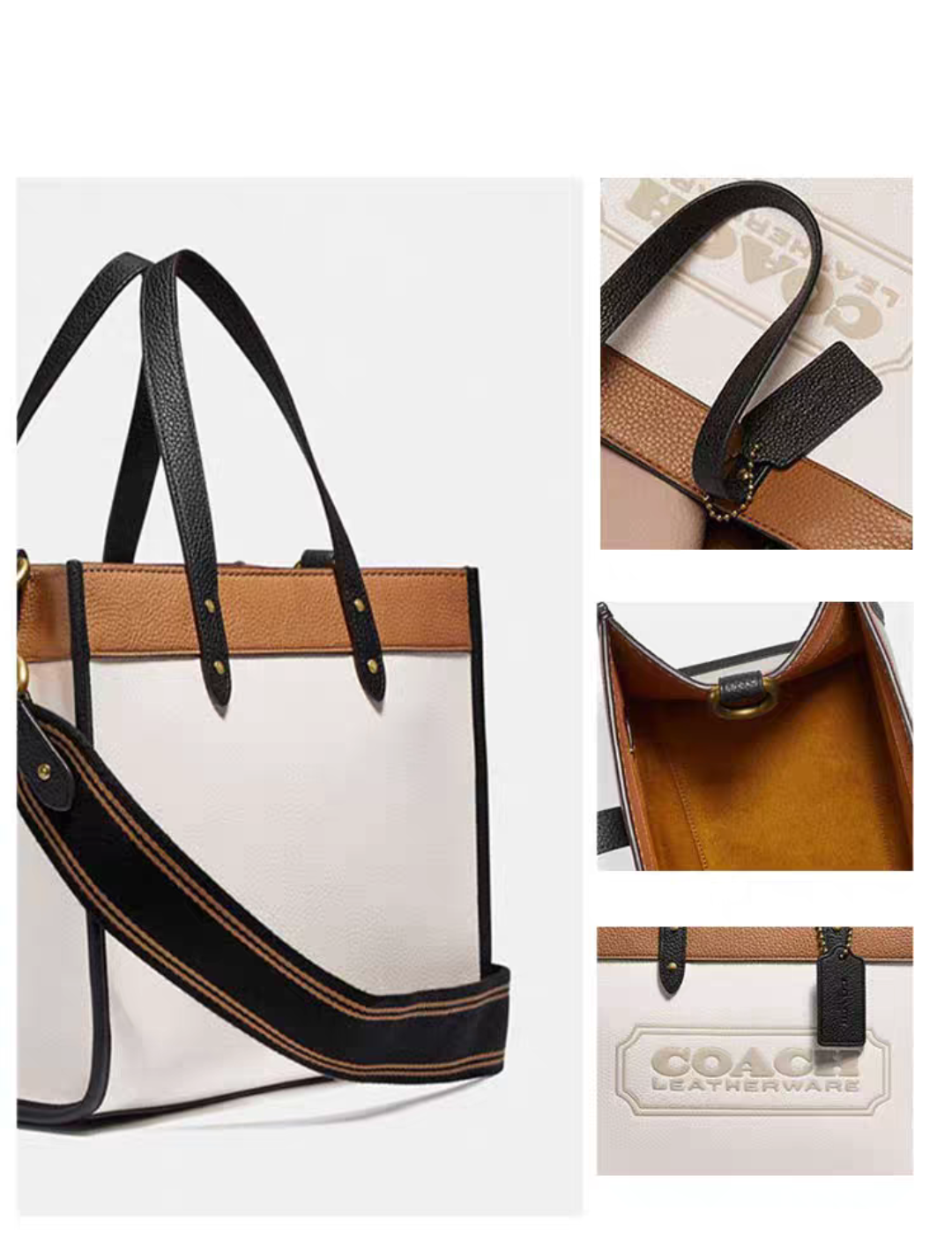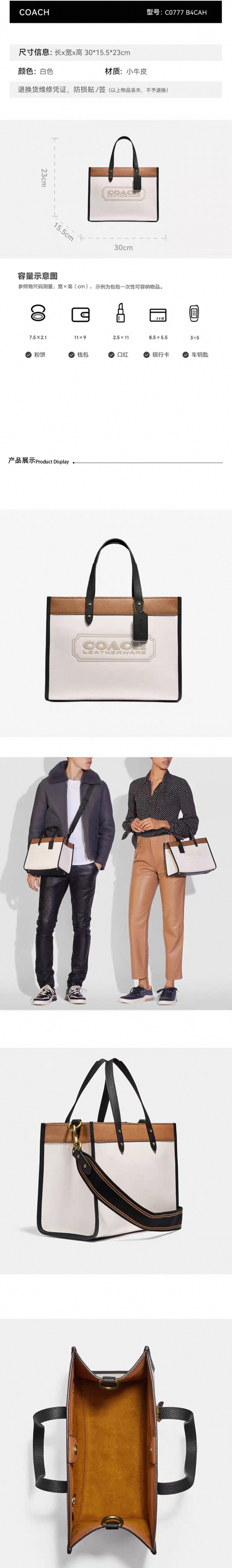 【香港直邮】COACH/蔻驰 女包 TOTE 购物袋托特包 单肩包 斜挎包托特包白色拼色-C0777 清关约7个工作日 -w