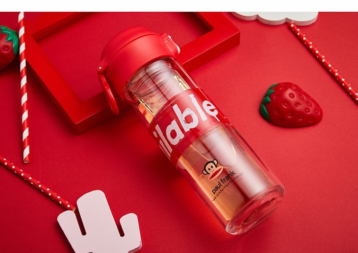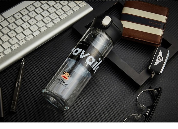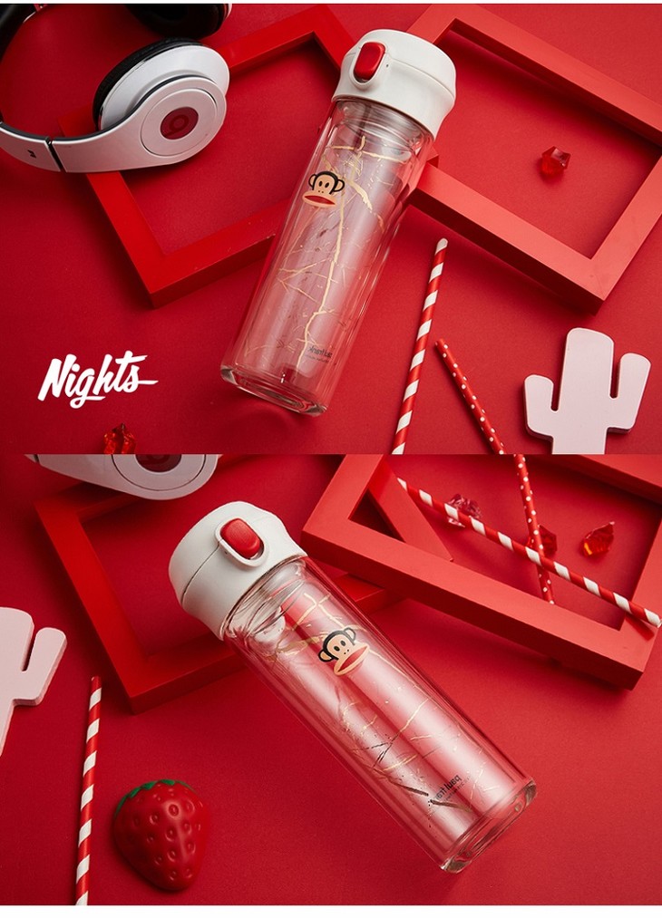 大嘴猴(Paul Frank) PFD051 双层玻璃杯300ML 创意弹盖水杯 便携车载随手杯男女耐热家用过滤茶杯