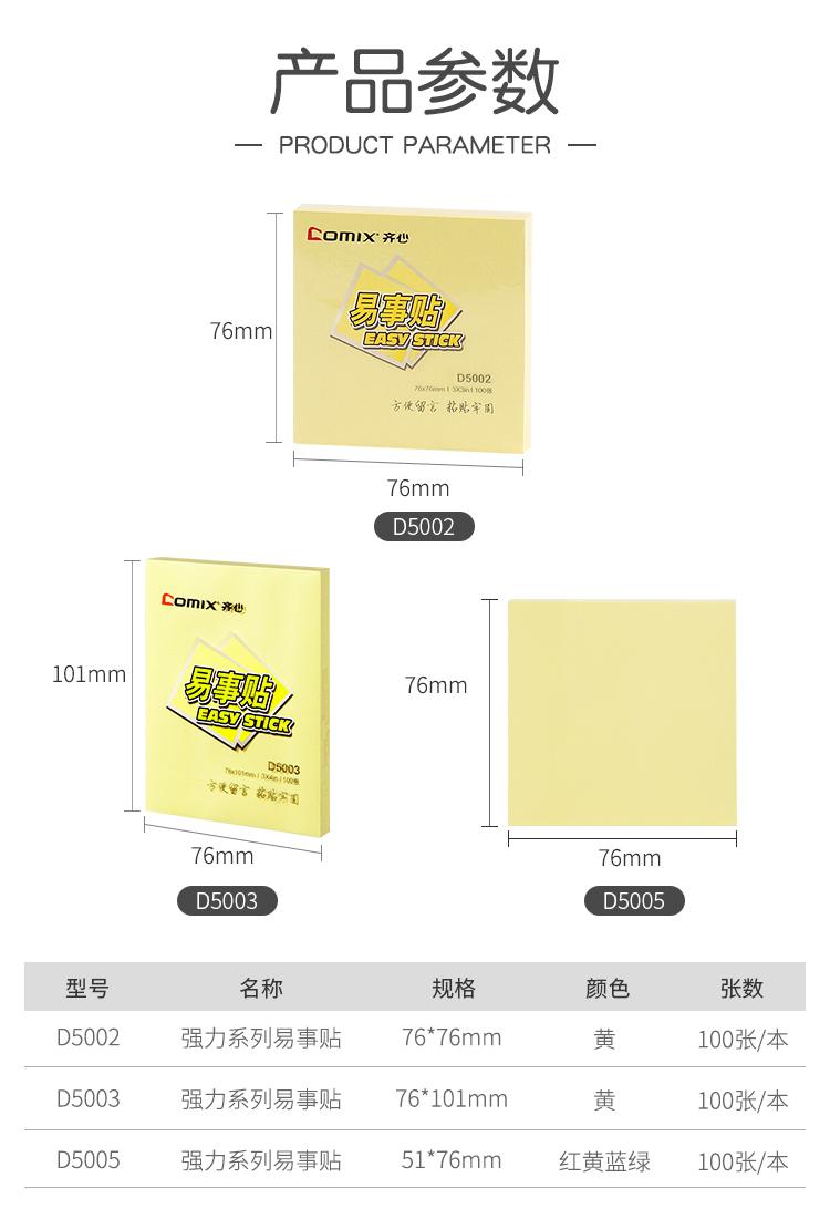 齐心(COMIX) 12本装便利贴/便签纸/便签本/易事贴(76x76mm) 办公文具 D5002 黄