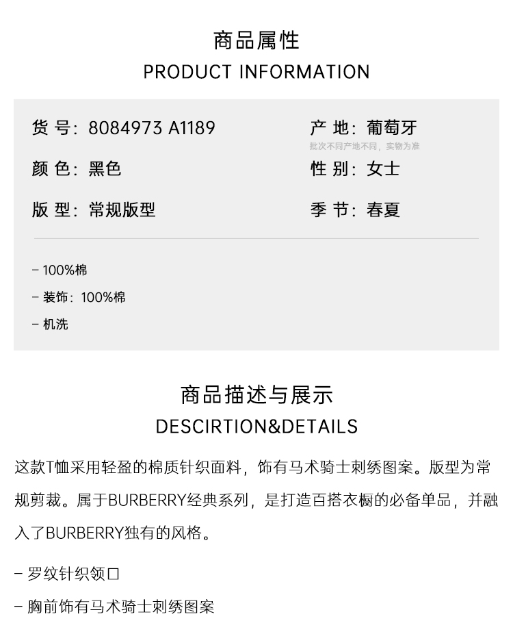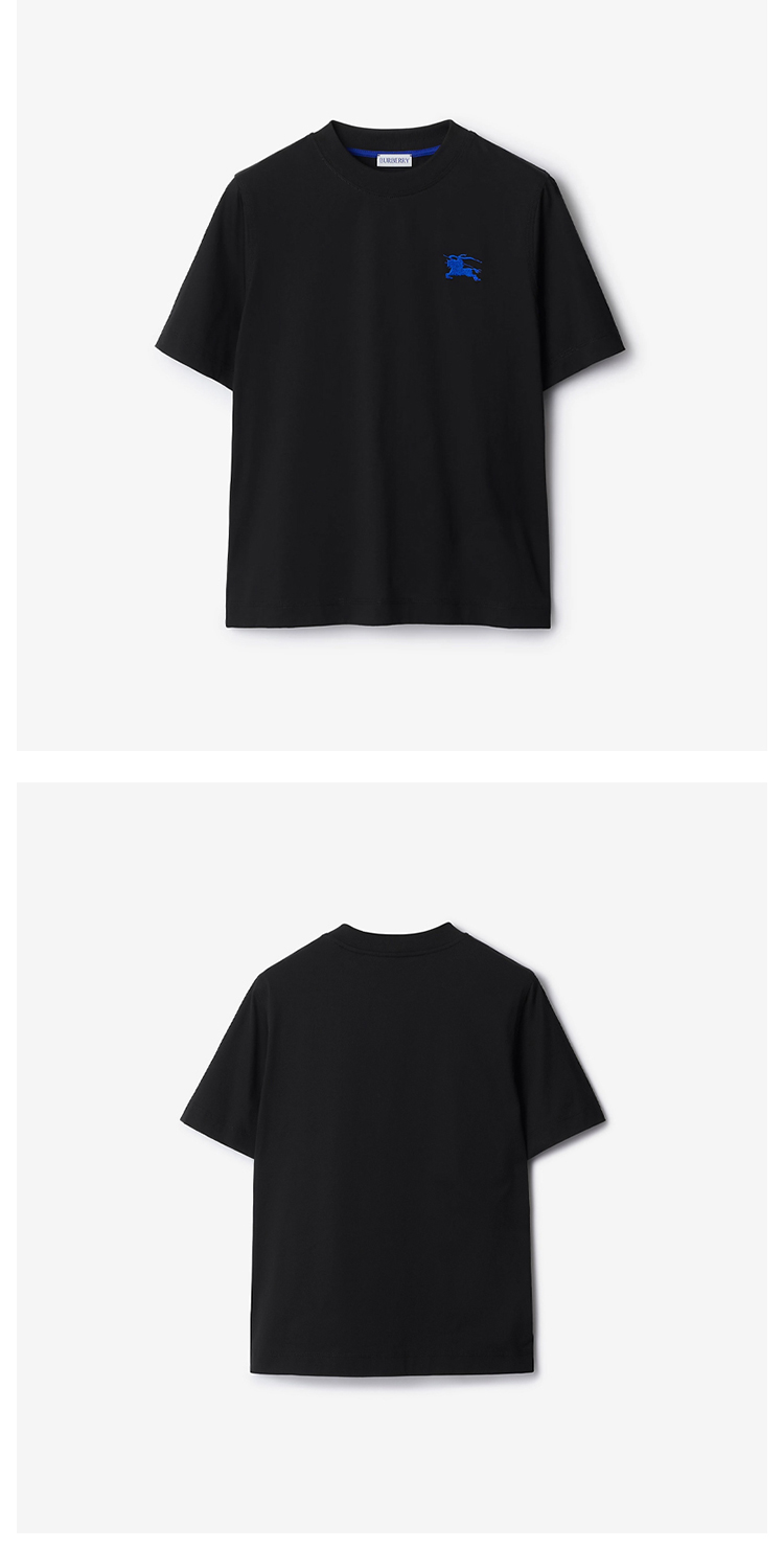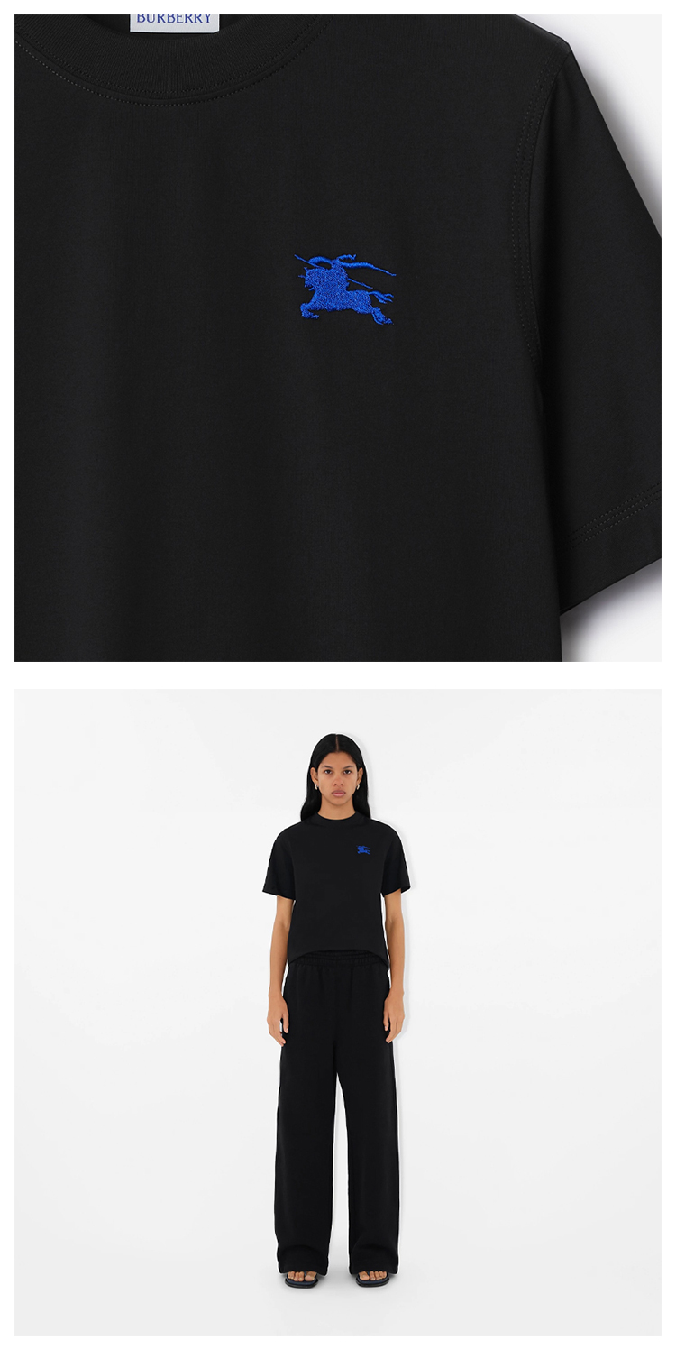 BURBERRY 巴宝莉 女士马术骑士徽标刺绣棉质圆领短袖T恤 黑色 8084973 A1189