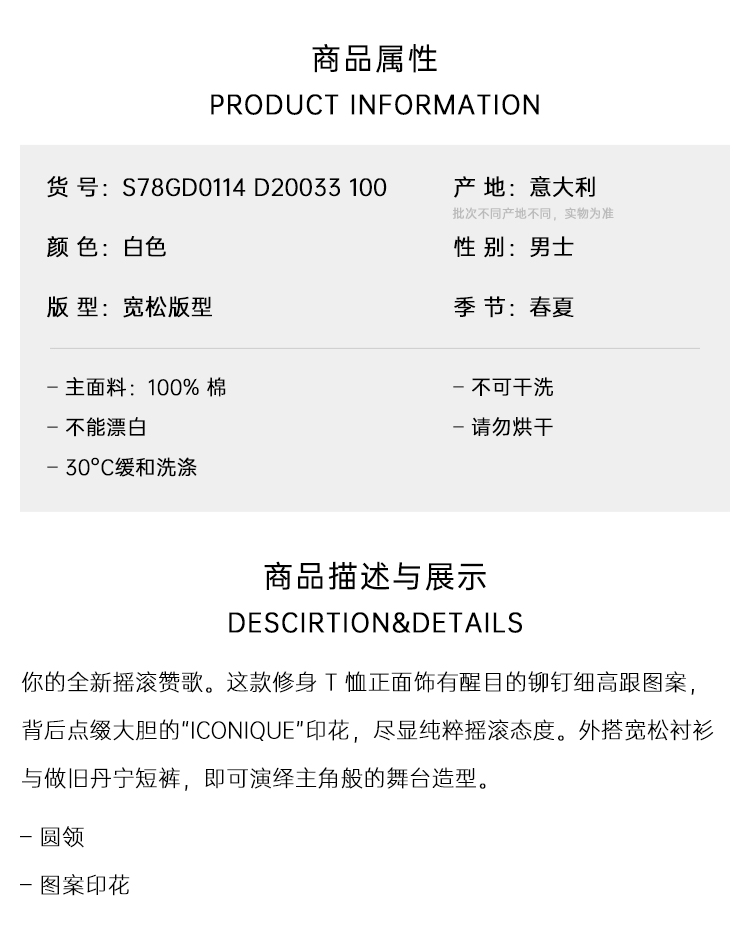 DSQUARED2 男士“ICONique”印花棉质宽松背心 白色 S78GD0114 D20033 100