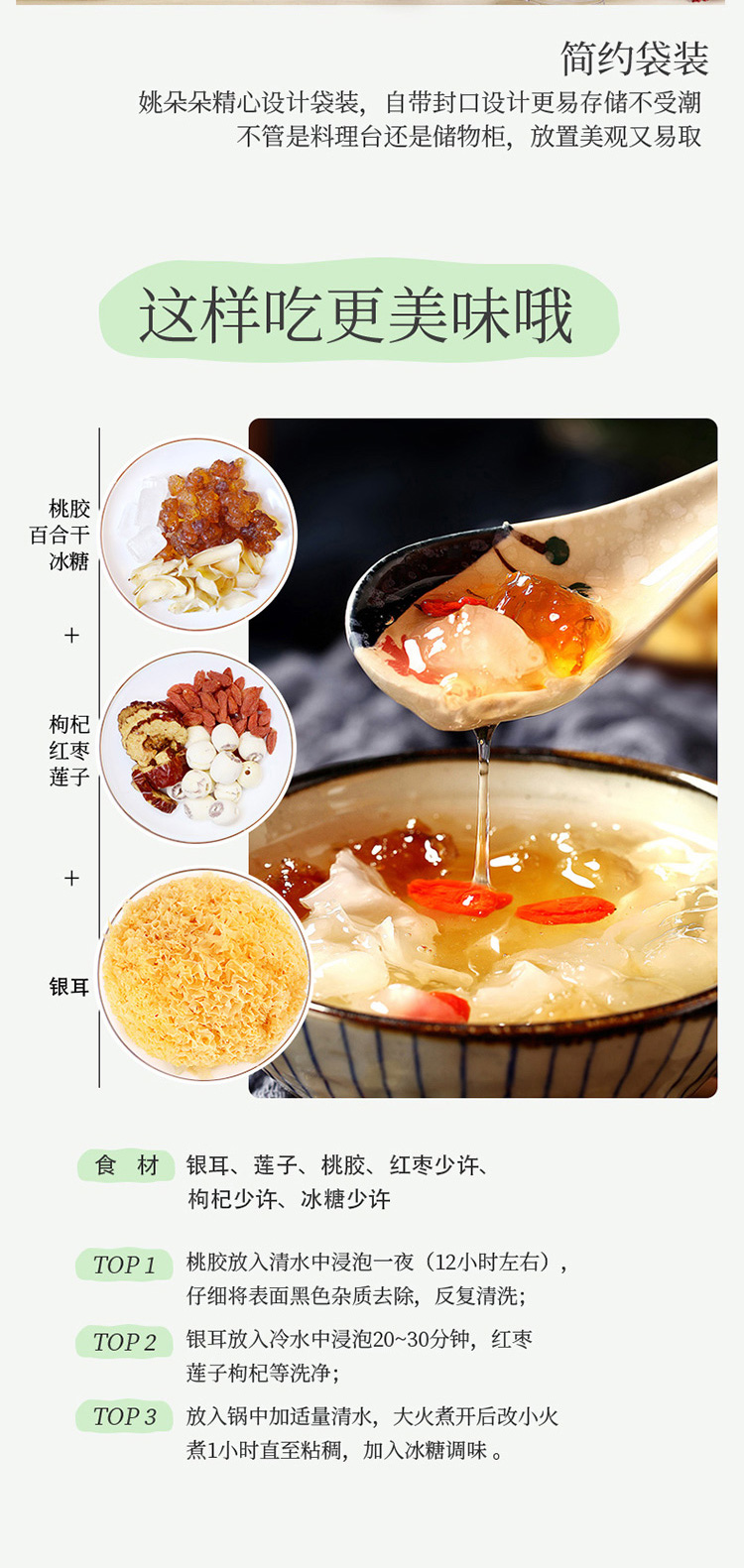【姚朵朵】福建古田糯耳银耳250g*2袋 银耳莲子百合羹