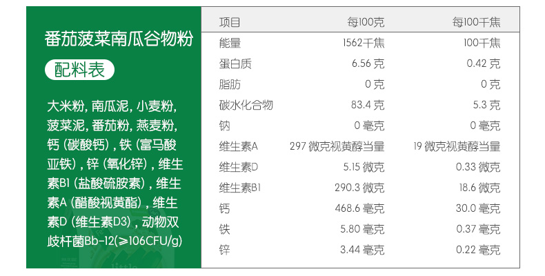 小皮番茄菠菜南瓜谷物胡萝卜大米粉南瓜谷物粉/XXP-119056