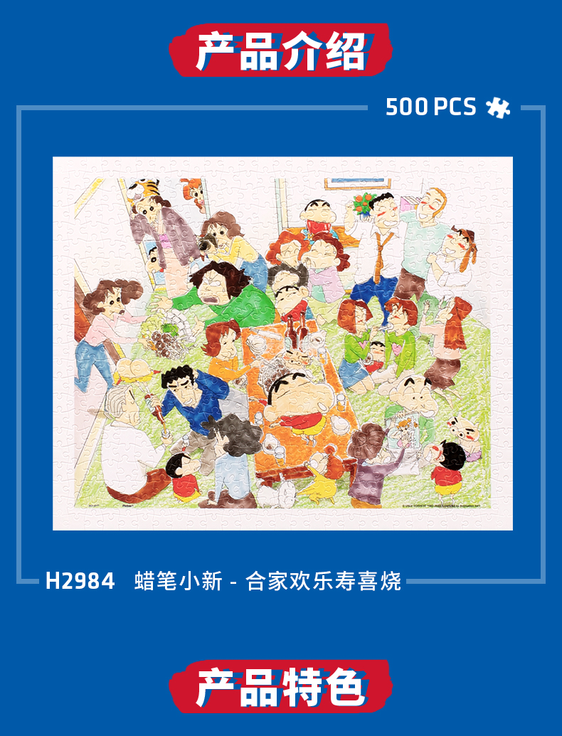 500片平面拼图塑料拼图 H2984 蜡笔小新-阖家欢乐寿喜烧