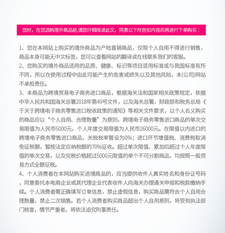 (注意:本产品为海淘产品,不支持7天无理由退换货,预计3个工作日内发货,不支持指定快递,不支持开发票。购买时需要账号、身份证、支付账户实名一致。收货地址可以填他人,发货后预计5-7天到货,如遇特殊情况:海关严查、物流、疫情等需以实际到货时间为准。批次不同,包装、效期会不同,具体以收到为准,请知悉~)