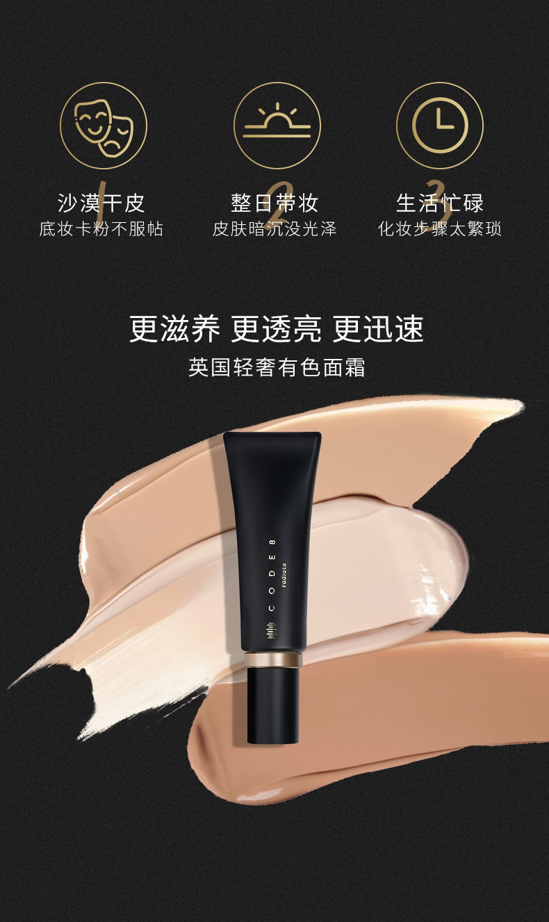 【美专保税】CODE8黑丝缎养肤有色面霜轻薄裸妆自然细腻水润保湿隔离提亮粉霜