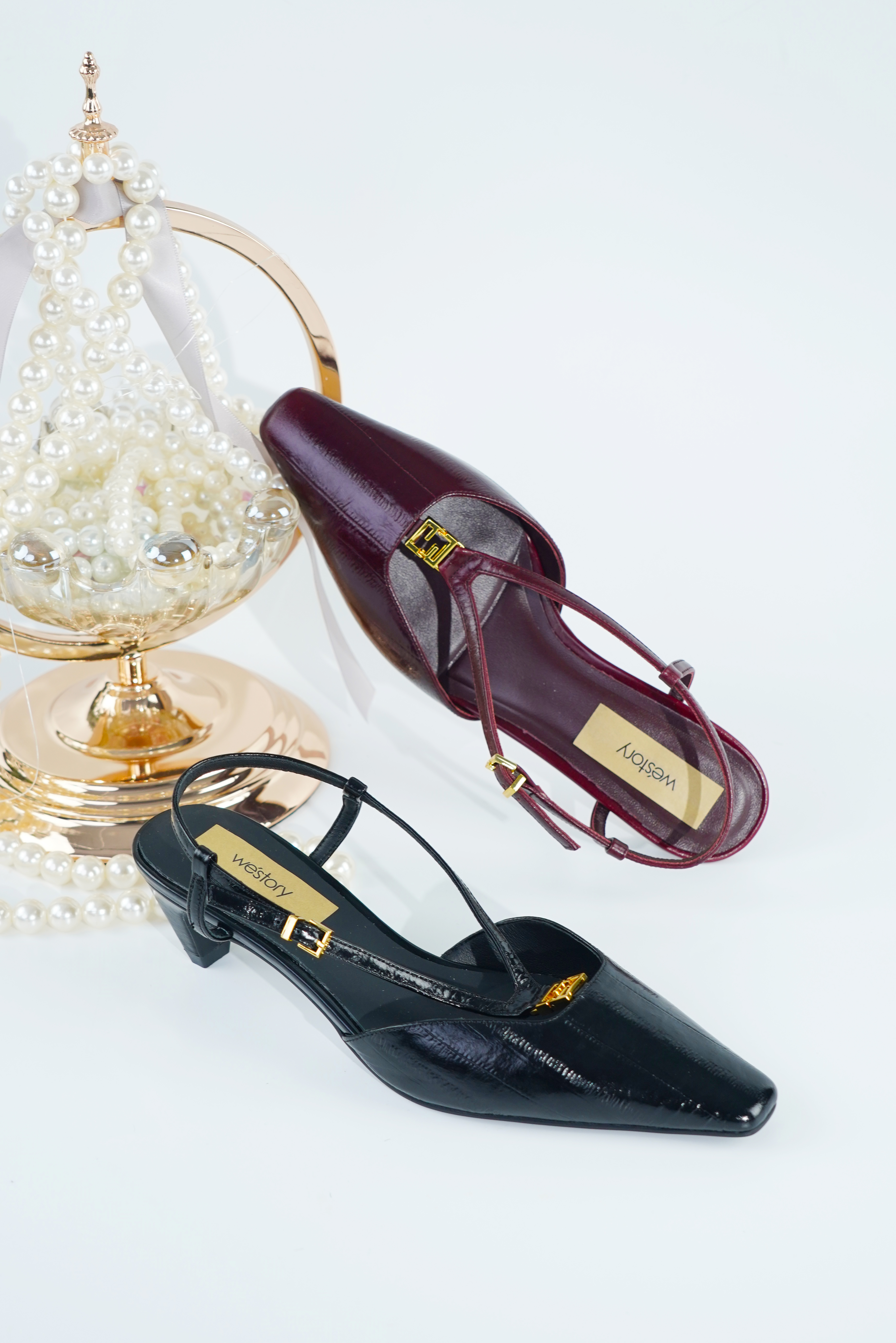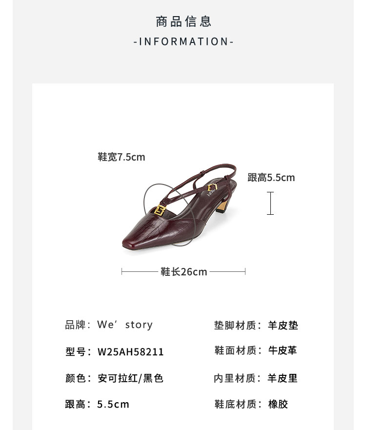 Westory2025年春季小方头低跟后空单鞋通勤百搭空凉鞋W25AH58211
